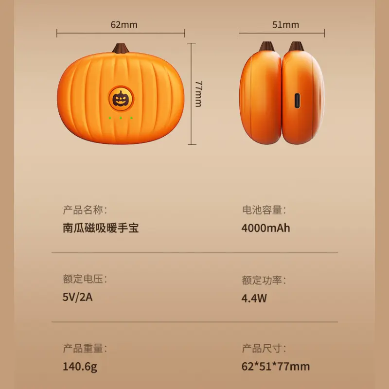 Stay Warm This Season With The Joytutus Rechargeable Portable Electric Hand Warmer! This unique device comes with magnetic handle for easy portability. Ideal for outdoor use and makes a great Halloween gift. Pumpkin pattern design adds festive atmosphere. Stay warm with hands on cold winter nights when fully charged.