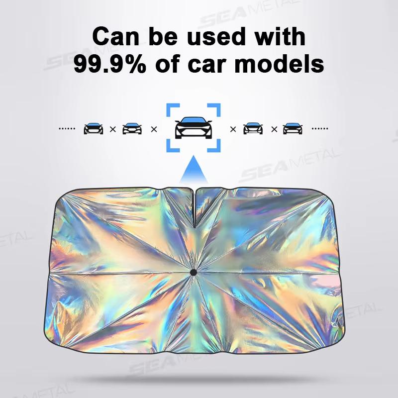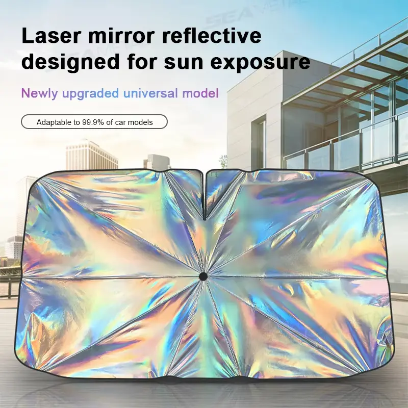 JOYTUTUS Retractable Sunshade Car Laser Universal Windshield Sun Umbrella