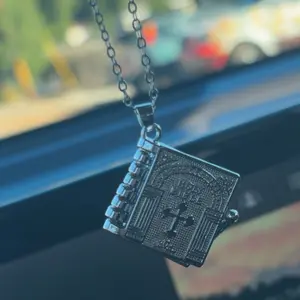 Joytutus Retro Personalized Openable Bible-Themed Car Rearview Mirror Charm