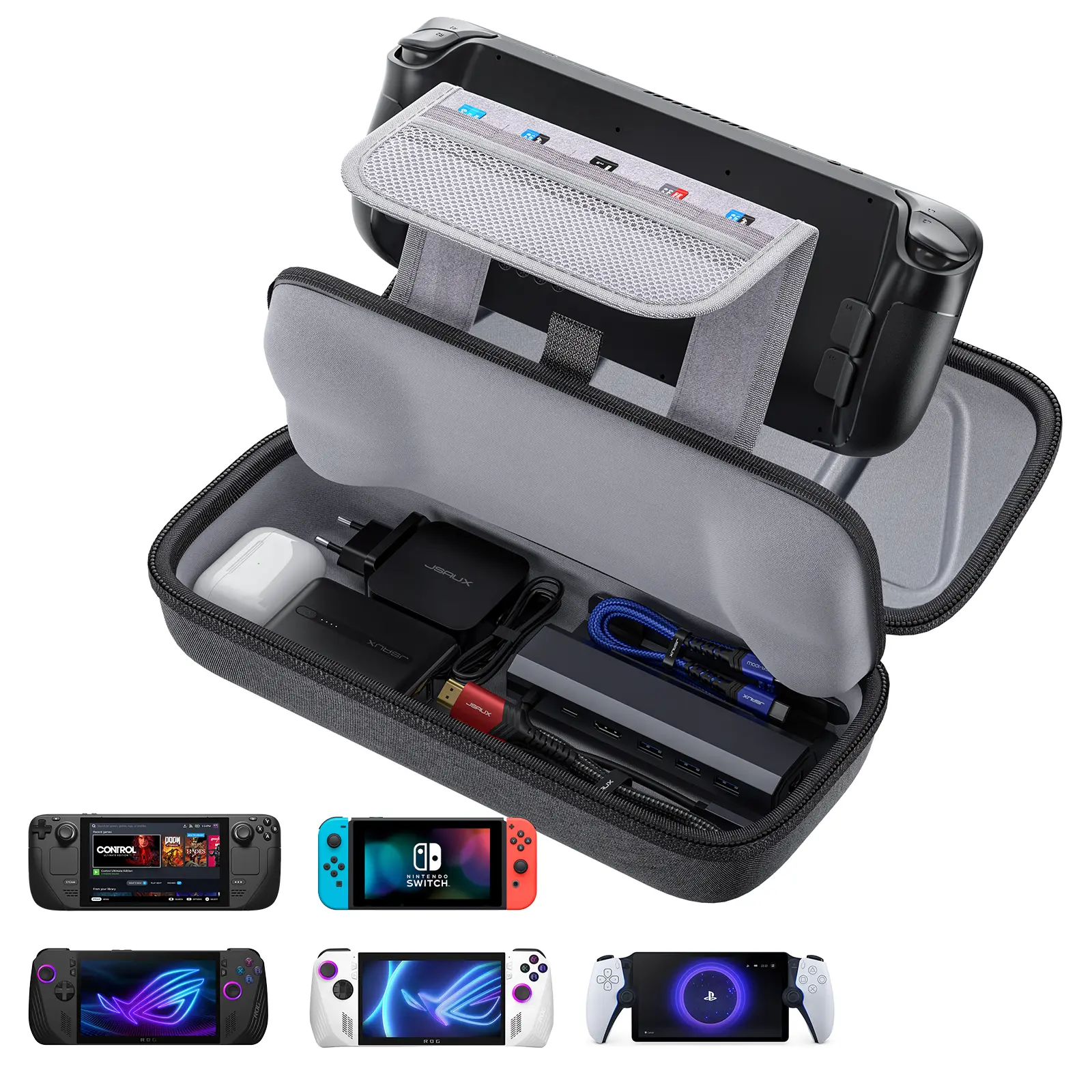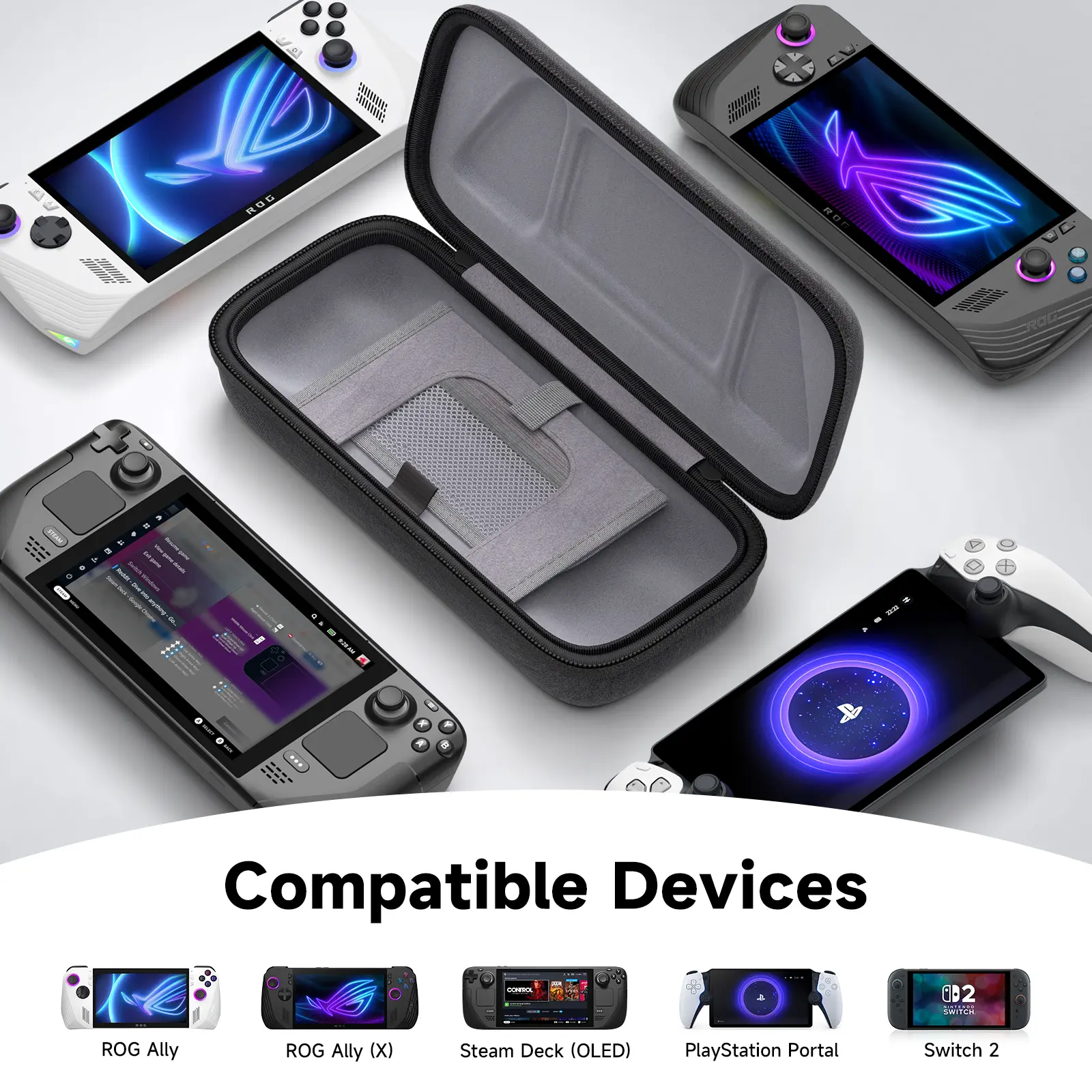 ·Steam Deck & ROG Ally Carrying Case: This carrying case is designed for Steam Deck (OLED) , ROG Ally and ROG Ally X (2024), also compatible with Nintendo Switch 2, PlayStation Portal Remote Player, providing safe daily protection, sturdy and durable. Giving you convenient storage and portable travel
