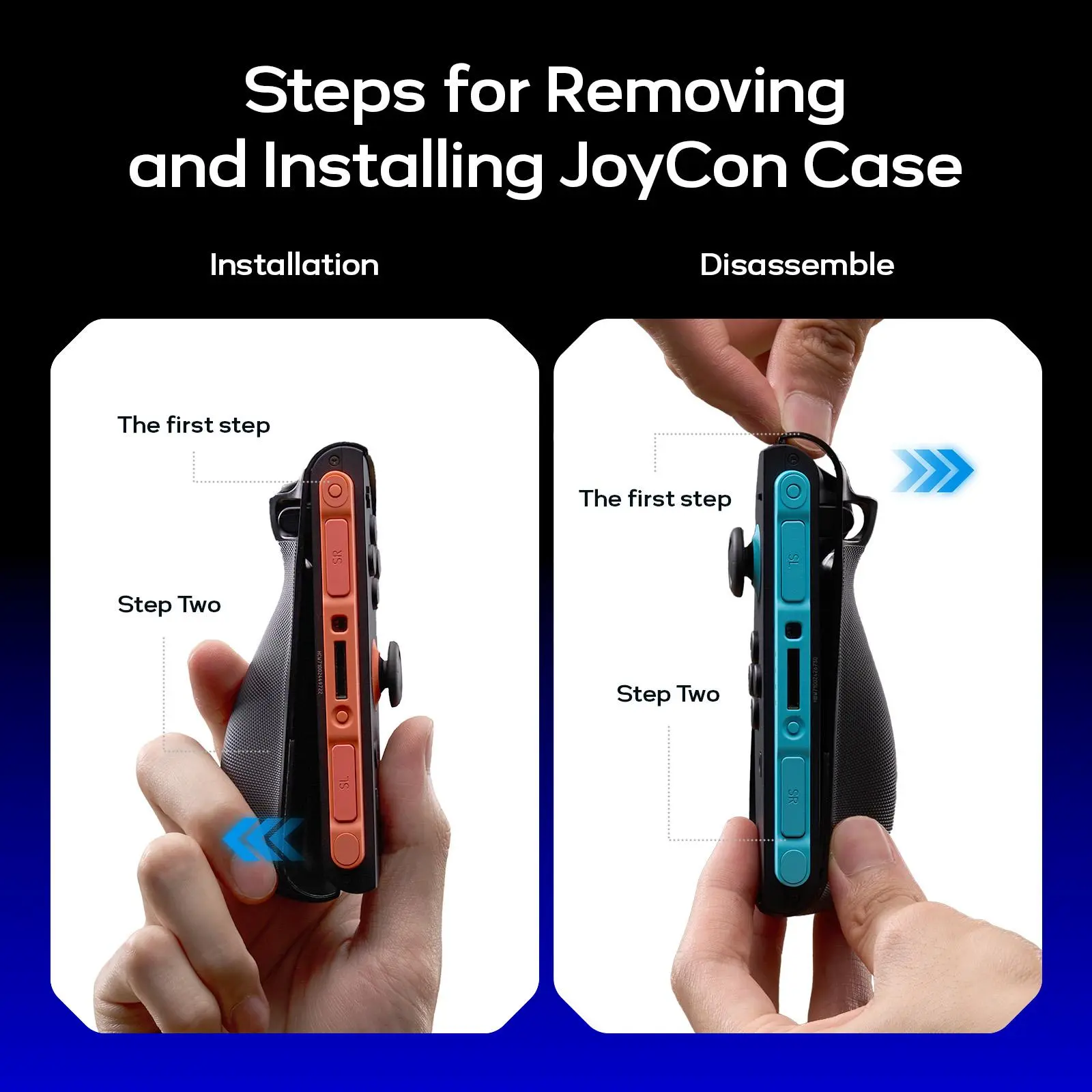 ·Note: 1.Please make sure to follow our instructional video when installing or removing the JoyCon protective case and front cover. 2. After installing the middle frame onto the Switch 2, press down on both bottom corners to ensure a snug fit. 3. Insert the Switch 2 with the case vertically into the dock. If it feels tight, apply light pressure—friction sounds are normal.