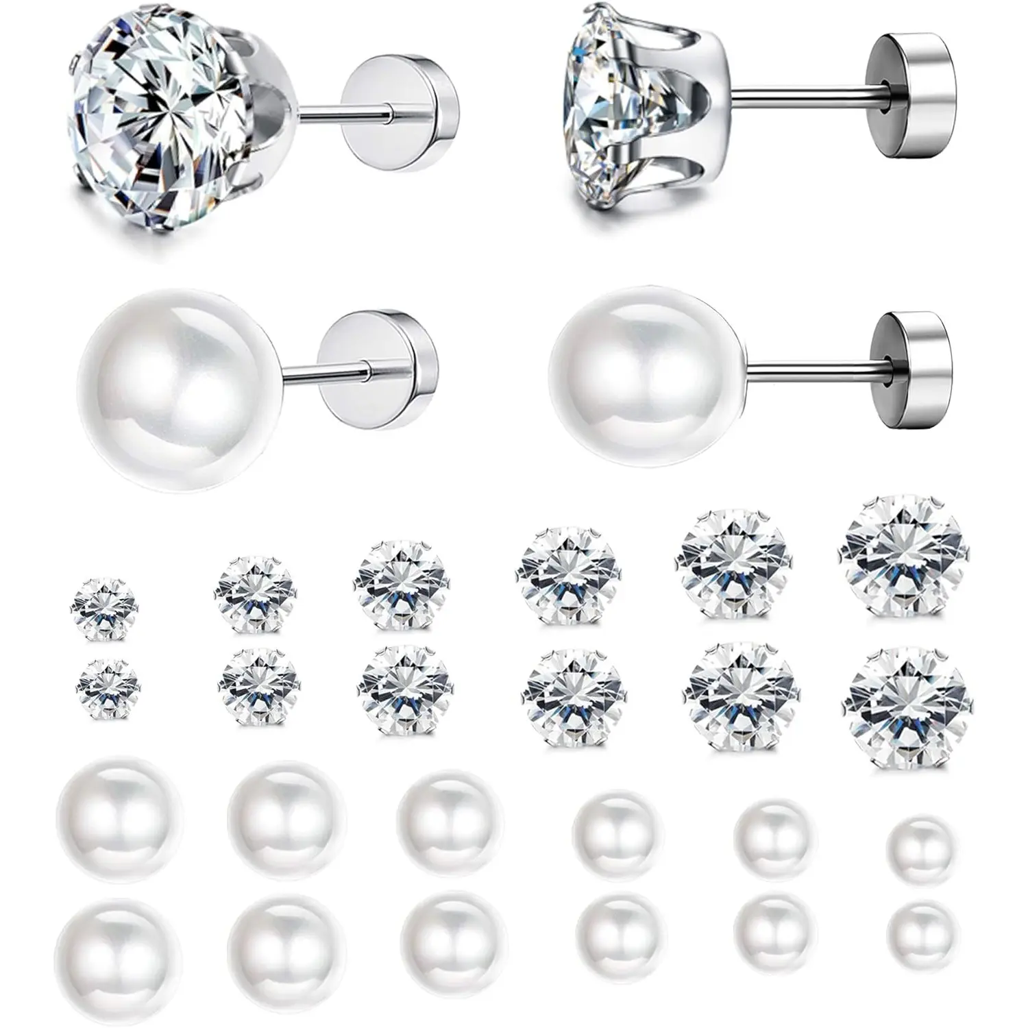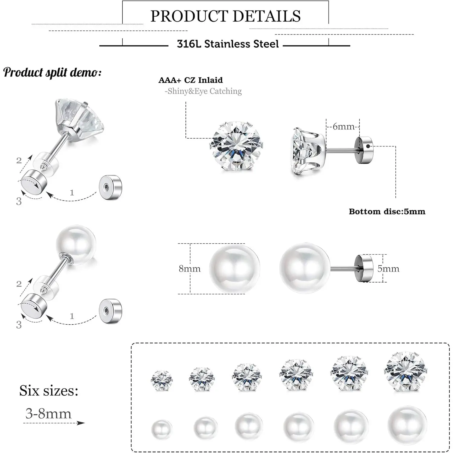 ·Shiny round cz/pearl earrings: 12 pairs of fashion stud earrings come as a set. 6 pairs of zircon earrings, 6 pairs of faux pearl earrings. stud earrings shiny round cubic zirconia and pearl inlaid, elegant and bling choice for your loved one. You can wear multiple earrings at the same time, exquisite earrings can enhance your charm.