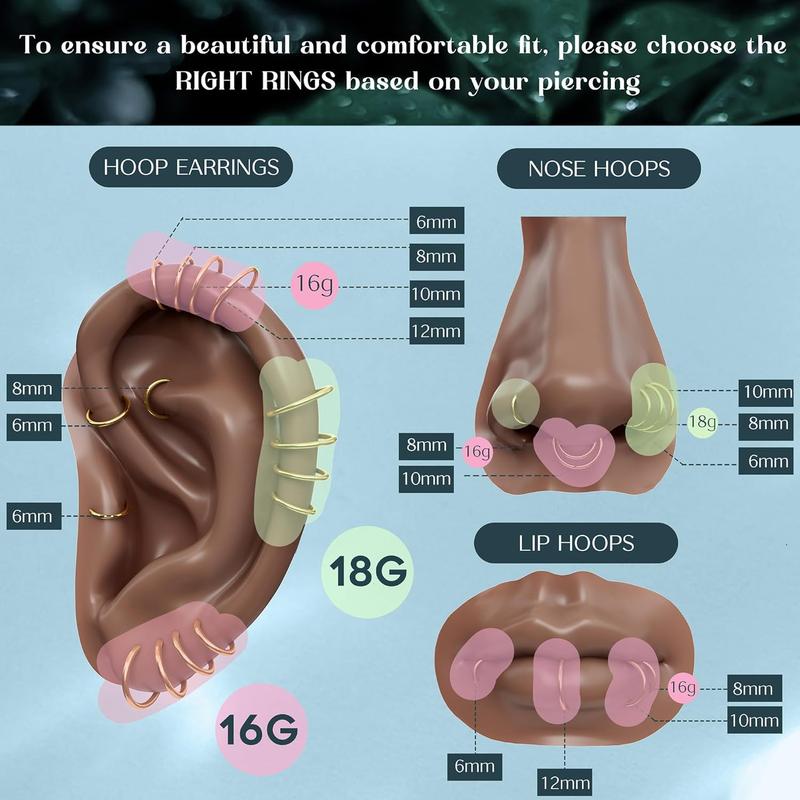 ·Multi-Function: These hinged seamless clicker ring perfect for nose piercing ring hoops, nostril hoop ring, lip rings hoops, tragus piercings hoops, helix earring, cartilage earrings hoops,daith clicker piercing, lobe ear piercings and more other body piercing.