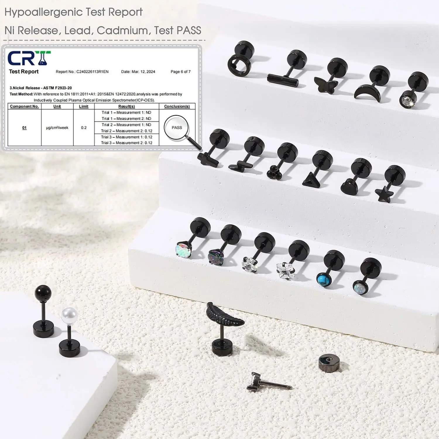 ·Earrings Sets for Multiple Piercing: Including 21 pairs silver flat back stud earrings, cz stud earrings, butterfly earrings, star and moon earrings, heart earrings, ball earrings, etc. Can be used as as cartilage earring, helix piercing, first hole, second hole, third hole, tragus piercing, etc. Feel free to match your style!