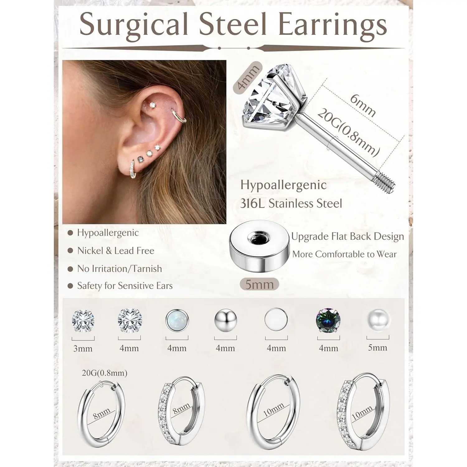 Silver earrings are made of premium 316L stainless steel earrings for sensitive ears. Lead and nickel free, no irritation, no tarnish and no rust. Newly upgraded vacuum plated, rigorously sensitivity-tested and validated. Ensures safety and comfort, ideal women earrings for everyday wear.