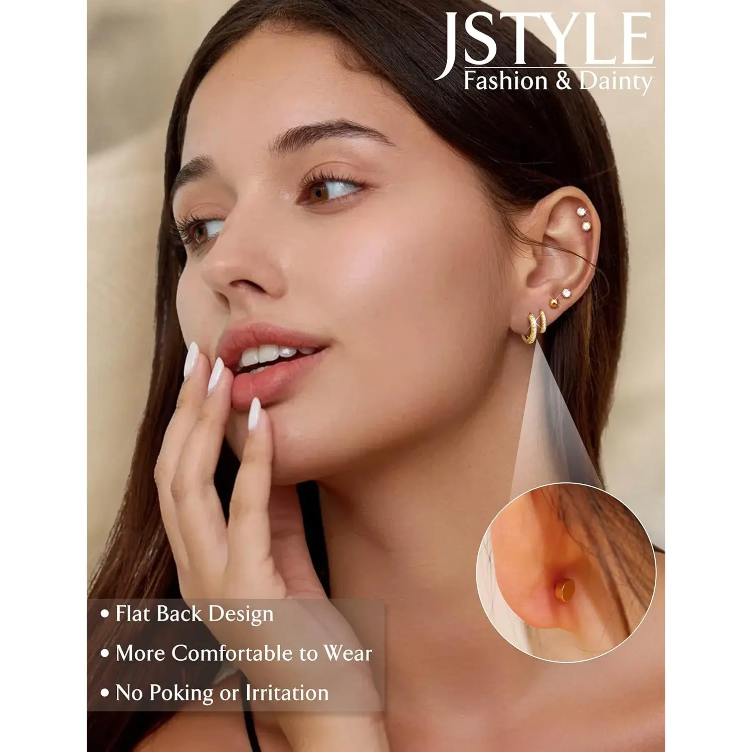 Well fitted and stackable, dainty stud hoop earrings set, create many different looks for you and get more compliments!
