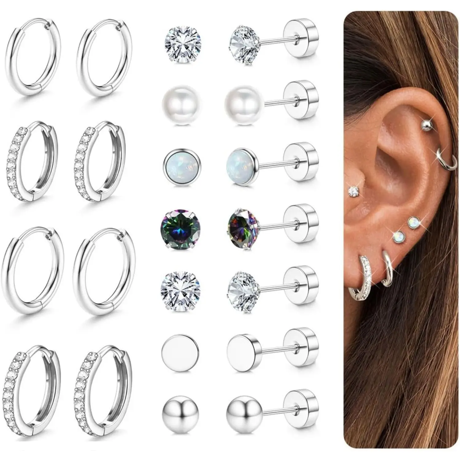 Including 7 pairs silver stud earrings and 4 pairs silver huggie hoop earrings. Perfect for multiple piercings stacks, such as cartilage earrings, helix piercing, tragus piercing, conch earrings piercing, first hole, second hole, third hole, etc. Trendy silver earrings for women, easily create over 288 charming looks, feel free to match with many stunning style!