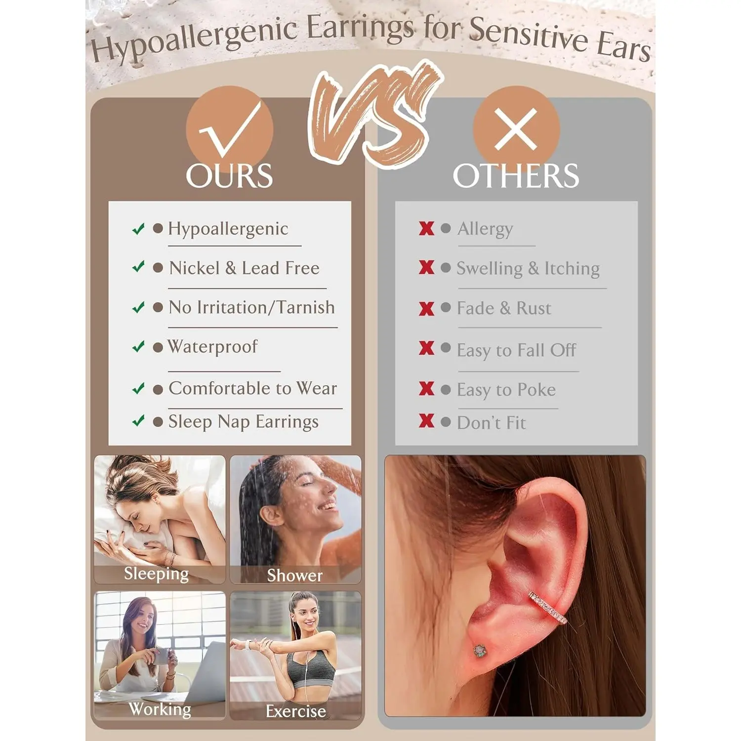 Hypoallergenic and comfortable silver cartilage earrings are suitable for women and men. Silver jewelry set with exquisite gift box, wonderful gift for your family or friend on Christmas, Birthday, Mother's Day, Graduation, Valentine's Day, New Year, Party, etc. Express your most sincere love to them!