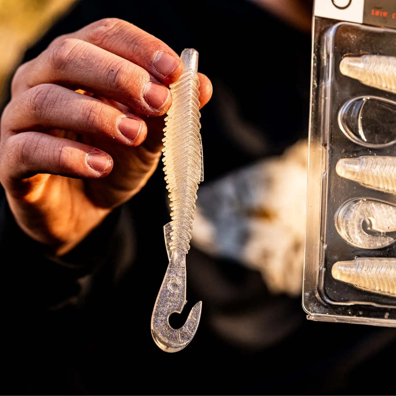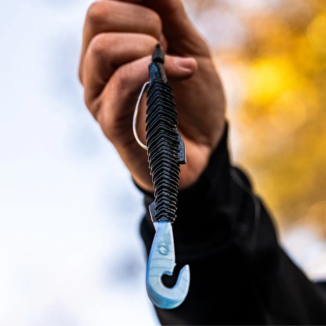 Built with a lifelike baitfish profile and a ribbed texture, the Judge delivers unparalleled movement in the water. Its beefier, upward-facing tail generates an enhanced thumping action, making it both highly visible and more perceptible to predatory fish.