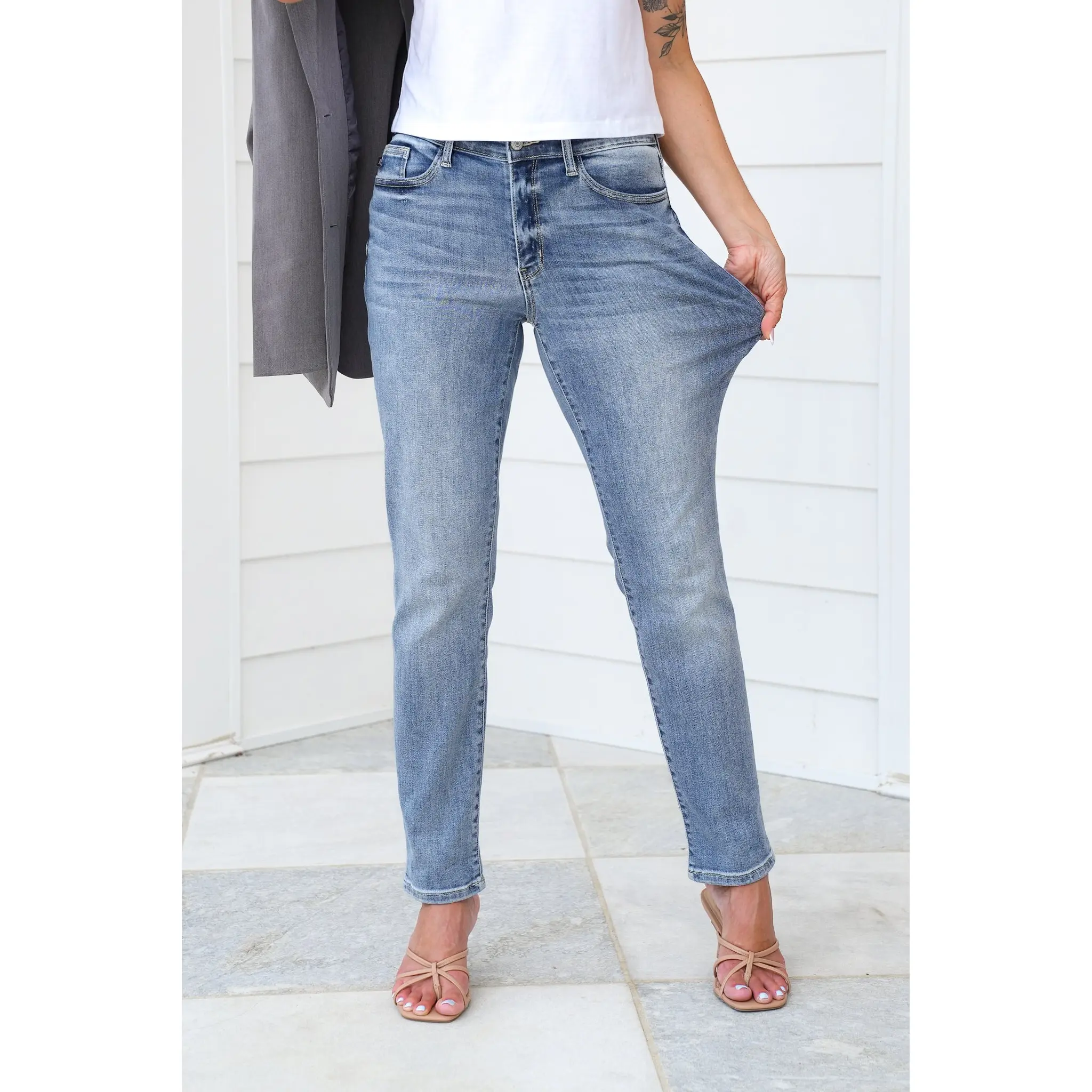 Meet your new denim crush! These Judy Blue boyfriend jeans bring a relaxed, laid-back feel with their light bleach wash and timeless mid-rise fit. They’re non-distressed with a neat hem that can be cuffed or left long, making them a breeze to style with sneakers or dressed up with block heels and a flirty blouse.