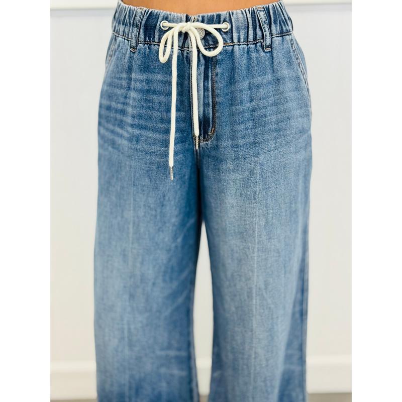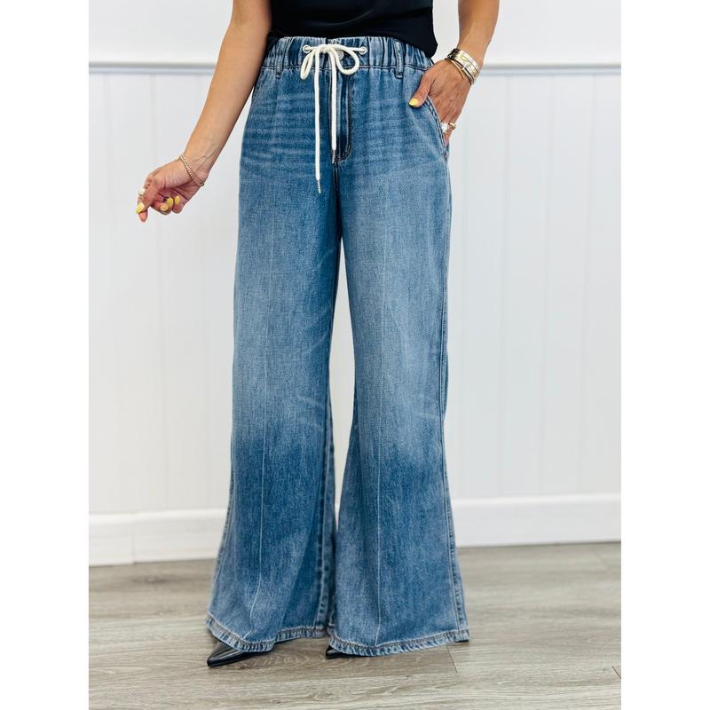 Step into comfort and style with the Judy Blue Slouchy Sue Palazzo Jeans. Featuring a high waist and featherweight fabric, these palazzo jeans flow effortlessly while the rigid elastic waistband offers a snug, flexible fit. Whether you’re dressing up or keeping it casual, these jeans bring playful ease to every step you take. Perfectly designed for both regular and plus sizes, they promise a flattering silhouette with all-day comfort.