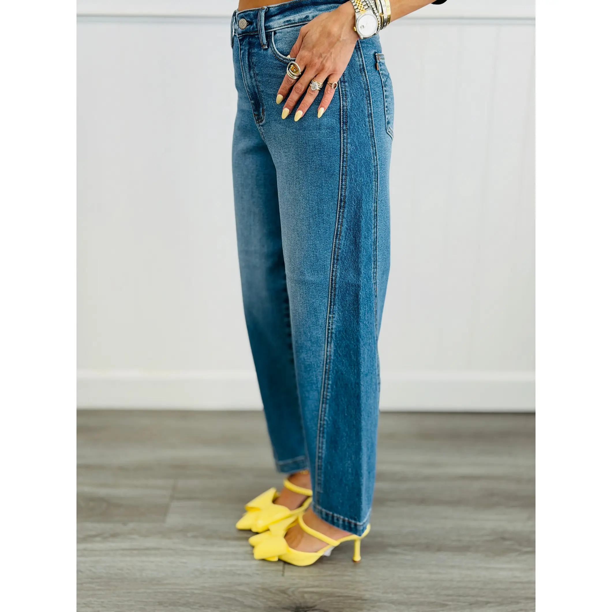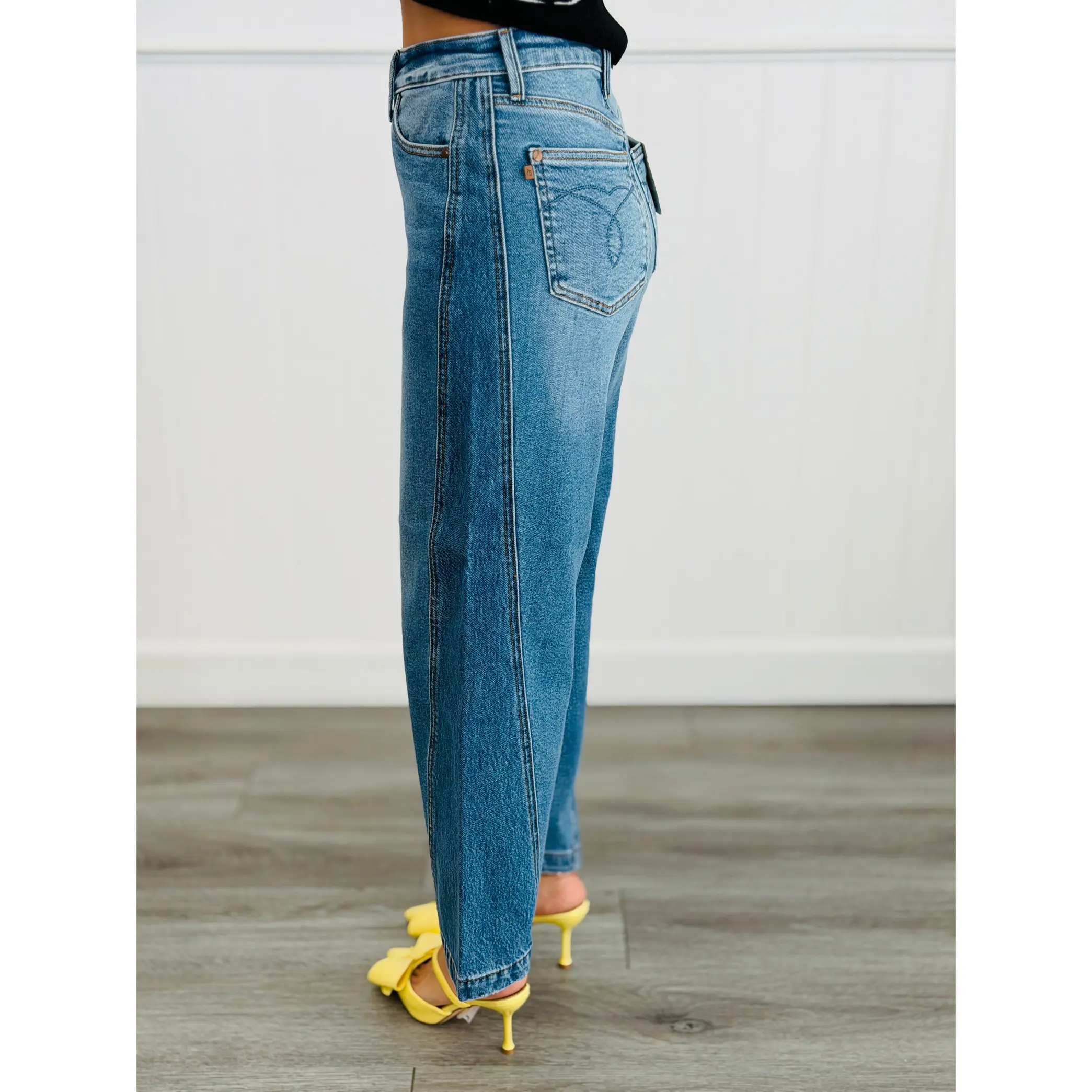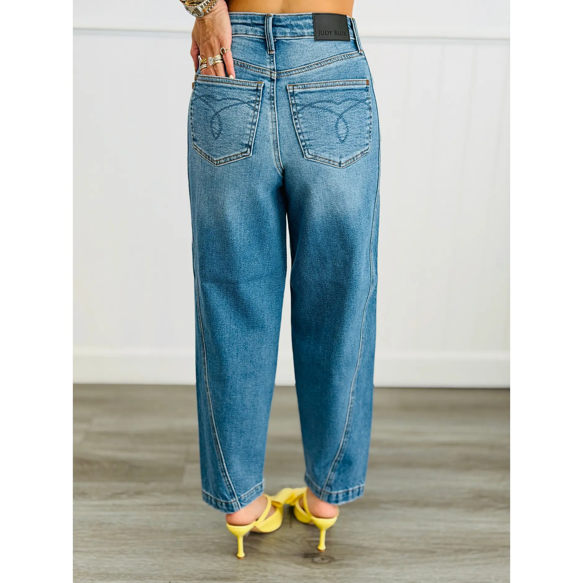 Rise to the occasion in these Judy Blue Millie Rigid Magic Barrel jeans! The high-waist cut pairs perfectly with a magic panel that smooths and flatters, while the rigid denim holds its shape beautifully. The barrel leg silhouette brings that effortless, on-trend vibe to any outfit. Available in regular and plus sizes, these jeans are your new go-to for looking polished without sacrificing comfort. Dress them up or down—they're ready for whatever your day brings!