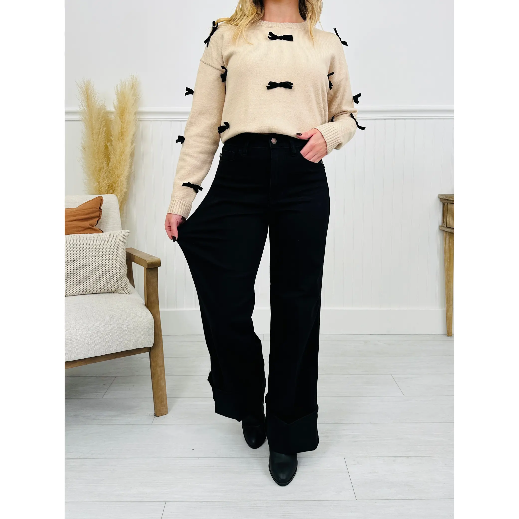We cannot keep retro wide leg jeans in stock and these new black wash retro wide leg jeans by Judy Blue might be our favorite pair yet. Designed in a rich black wash, these jeans blend retro charm with modern comfort. The high-rise fit flatters your shape, while the retro wide leg creates that trendy, effortless, and elongating silhouette everyone loves.