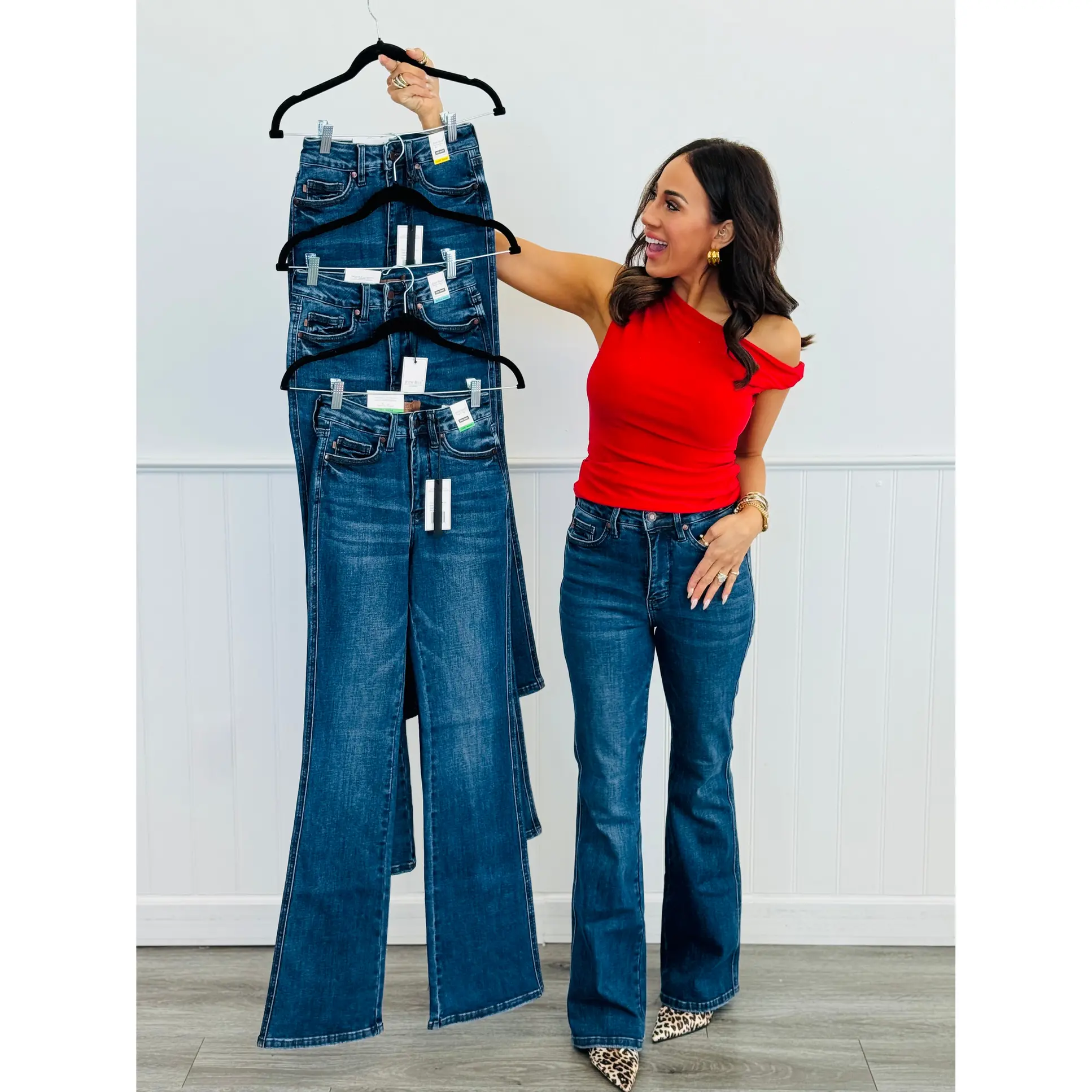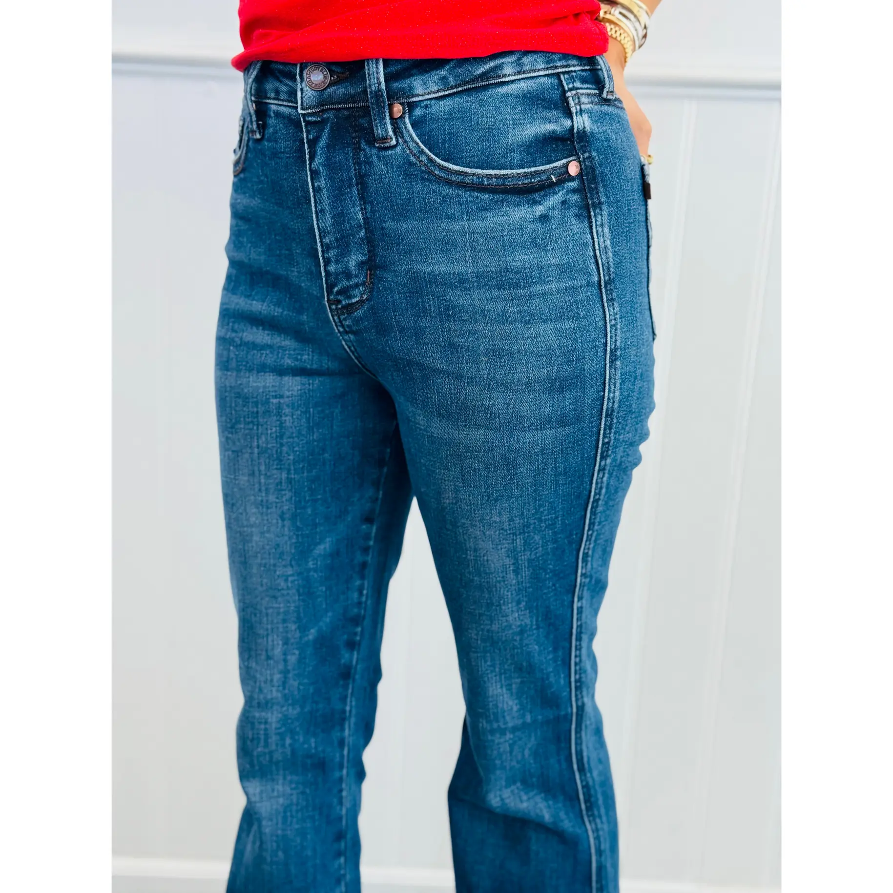These Judy Blue jeans provide comfortable tummy control and flattering high waist fit. Perfect for any occasion, these jeans come in regular and plus sizes and three different lengths. Look and feel great in these closet classics, the Taylor Jean!