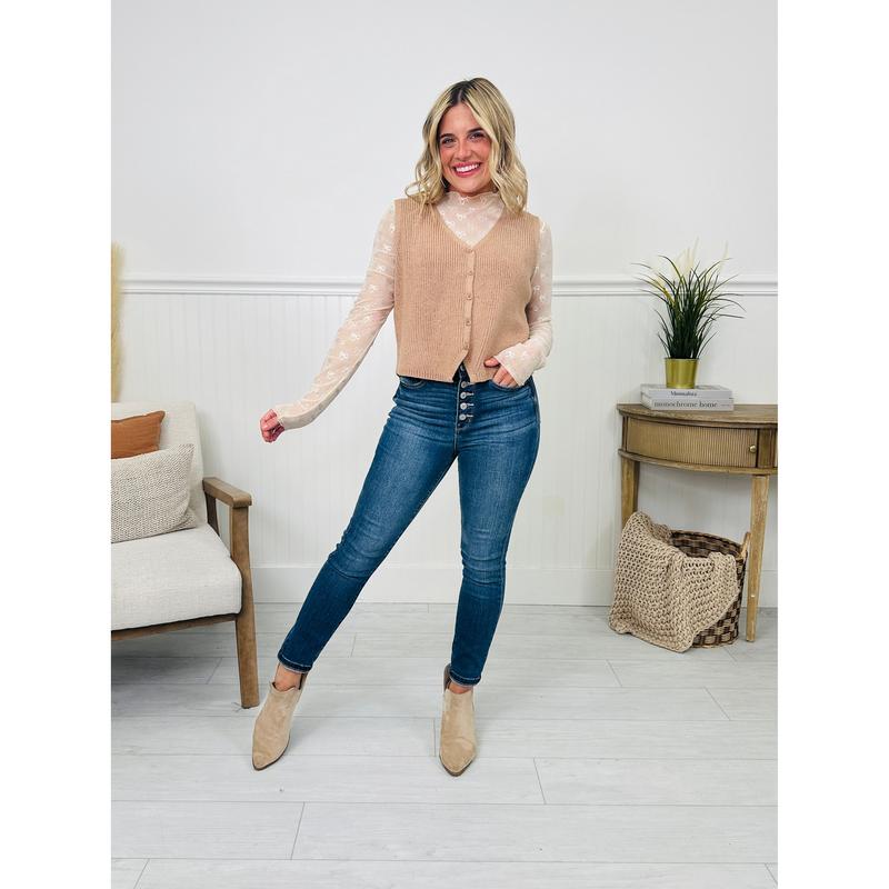 Stay fly this season in these new Judy Blue button fly skinny jeans that are perfect for fall. These are the perfect jeans to pair with all of your fall booties. We love the high rise paired with the button fly details that are going to suck you in and slim you out in all the right places.