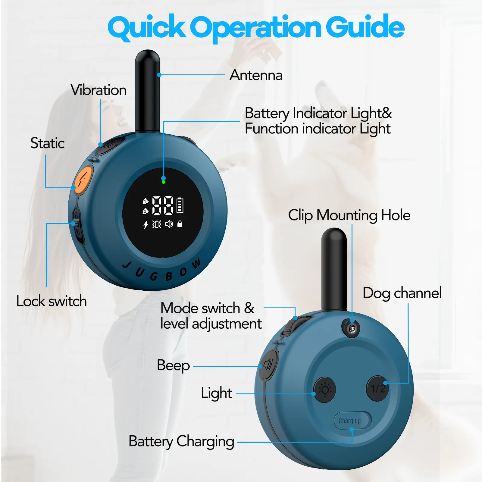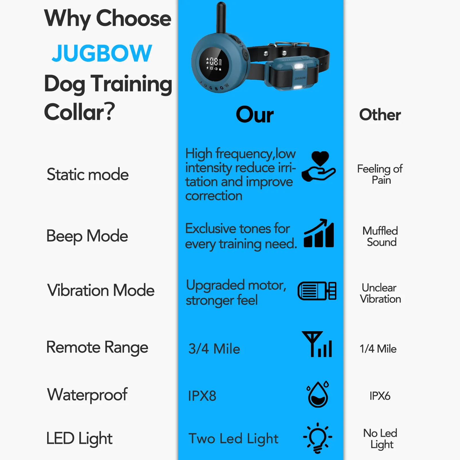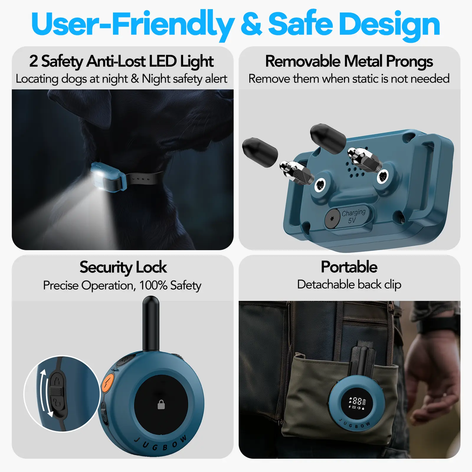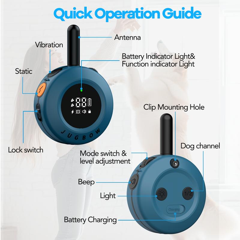 【Fits Most Sizes of Dogs】Jugbow shock collar for dogs sizes with neck sizes from 6- 22 inches, which can fit large, medium and small dogs, weights from 10-120 lbs+. The collar is crafted from durable TPU rubber, offering maximum adjustability and easier cleaning to provide a comfortable, lightweight fit for your dog.