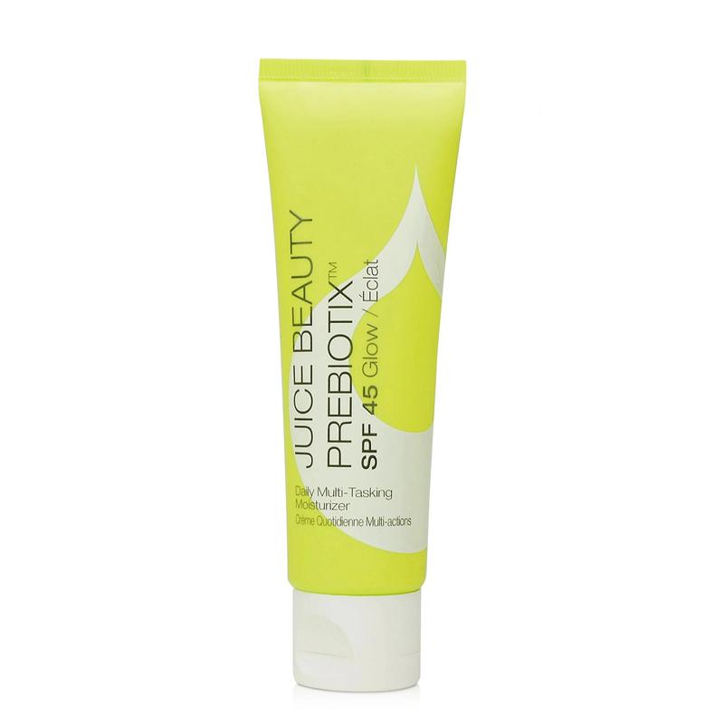 Glow, protect + blur with Juice Beauty’s organic ingredients Prebiotix SPF 45 Glow, Daily Multi-Tasking Moisturizer. The lightweight natural mineral zinc melts into your skin for a hydrated, dewy glow. This multi-tasker is formulated with broad spectrum SPF to protect against the sun’s rays. Antioxidant rich emblica flavonoids and high-tech ectoin plants help balance the skin’s microbiome.