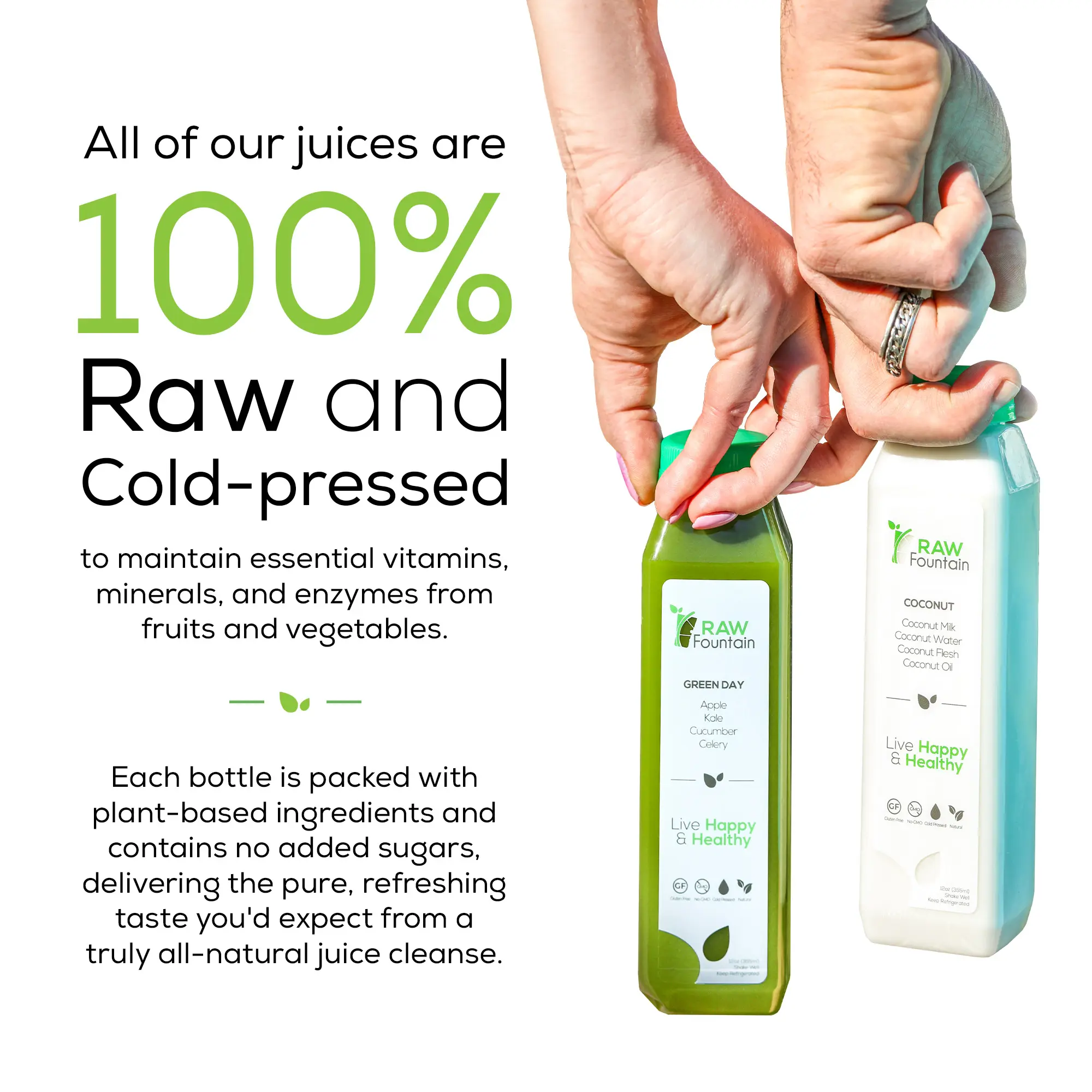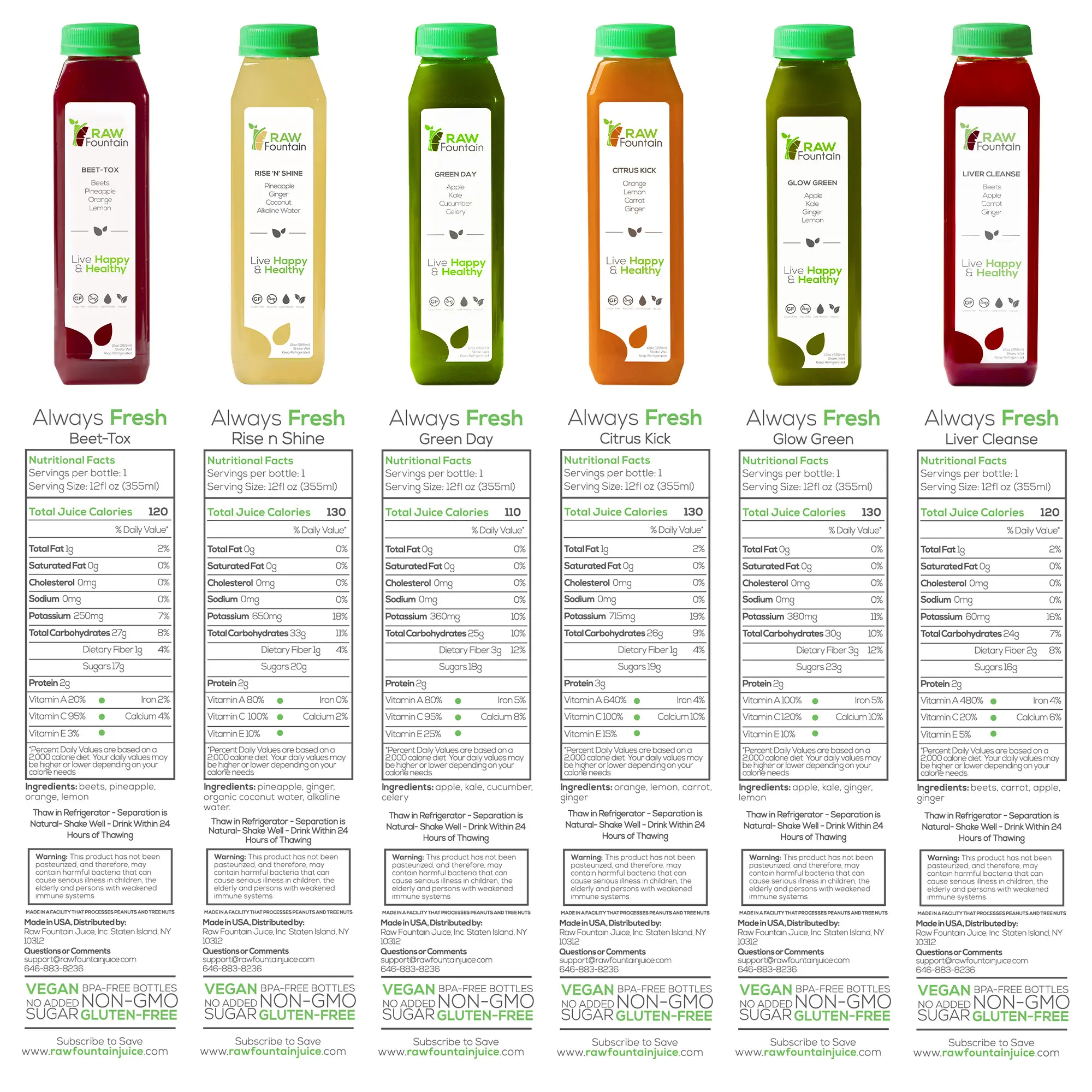 ·RAW FOUNTAIN Cold Press process preserves a LOT more Vitamins and Minerals than regular juicers do. Not only do the juices taste better, but they are HEALTHIER!