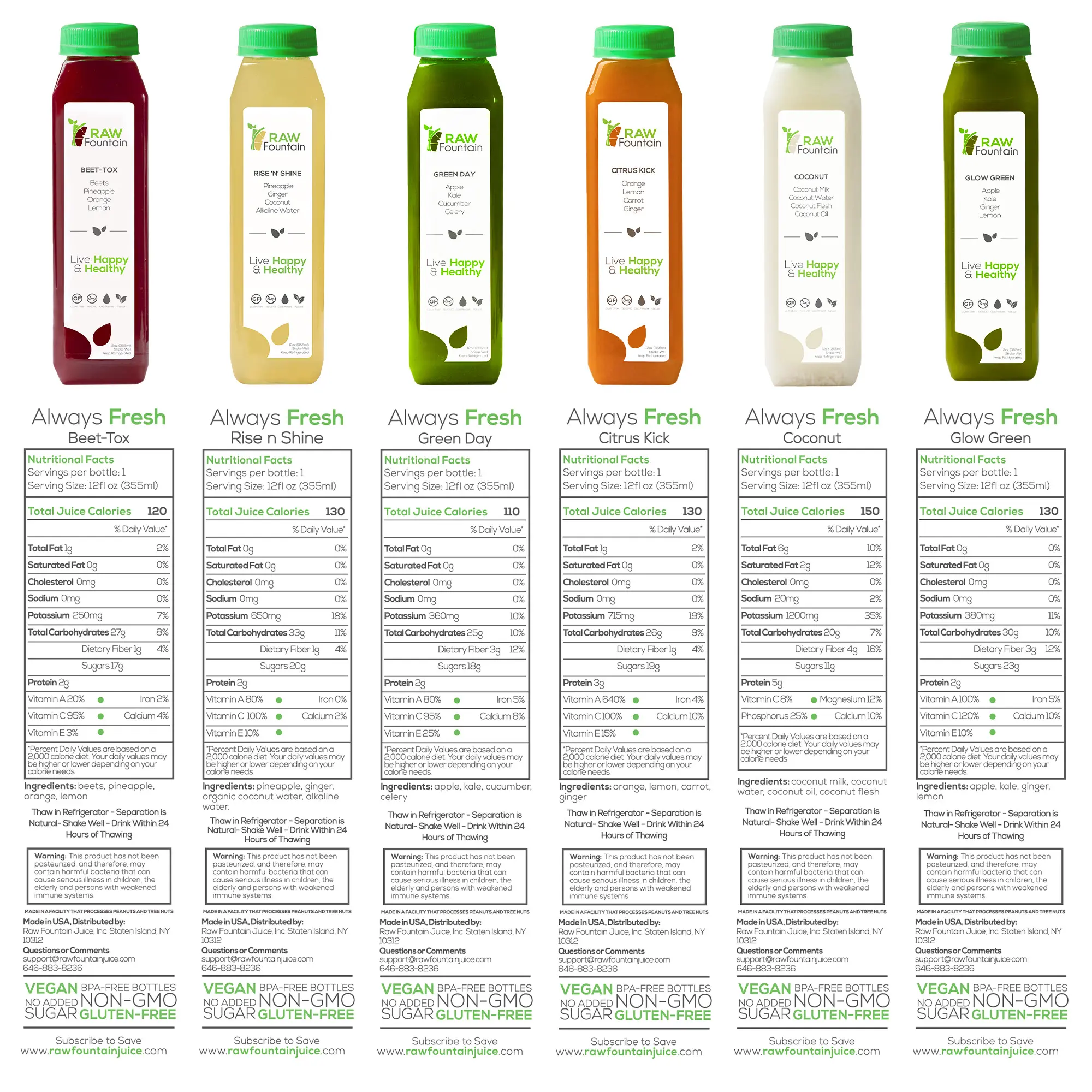 Upon delivey, the box was ripped open at the side and two juices were missing. I am highly disappointed about that,please see attached video but besides that the juices were packaged well because they were still frozen.
