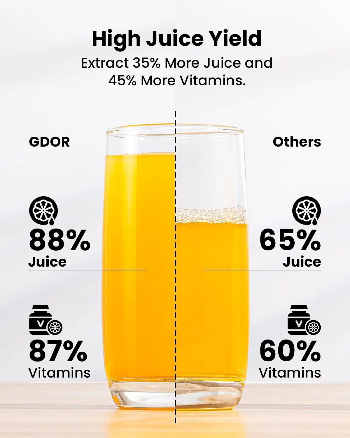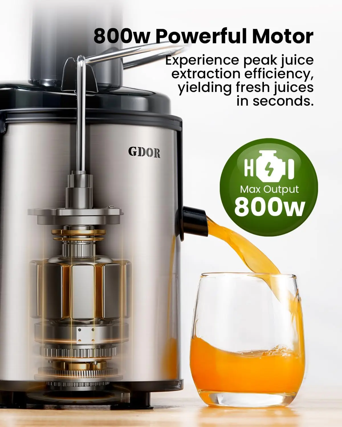 ·【800W Powerful Motor】- Equipped with a robust motor boasting an additional 800 watts of power, this power juicer supports maximum juice extraction. Juice extractor machine effortlessly produces fruit and vegetable juices in mere seconds, resulting in a 75% increase in juice yield and 60% more vitamins and minerals