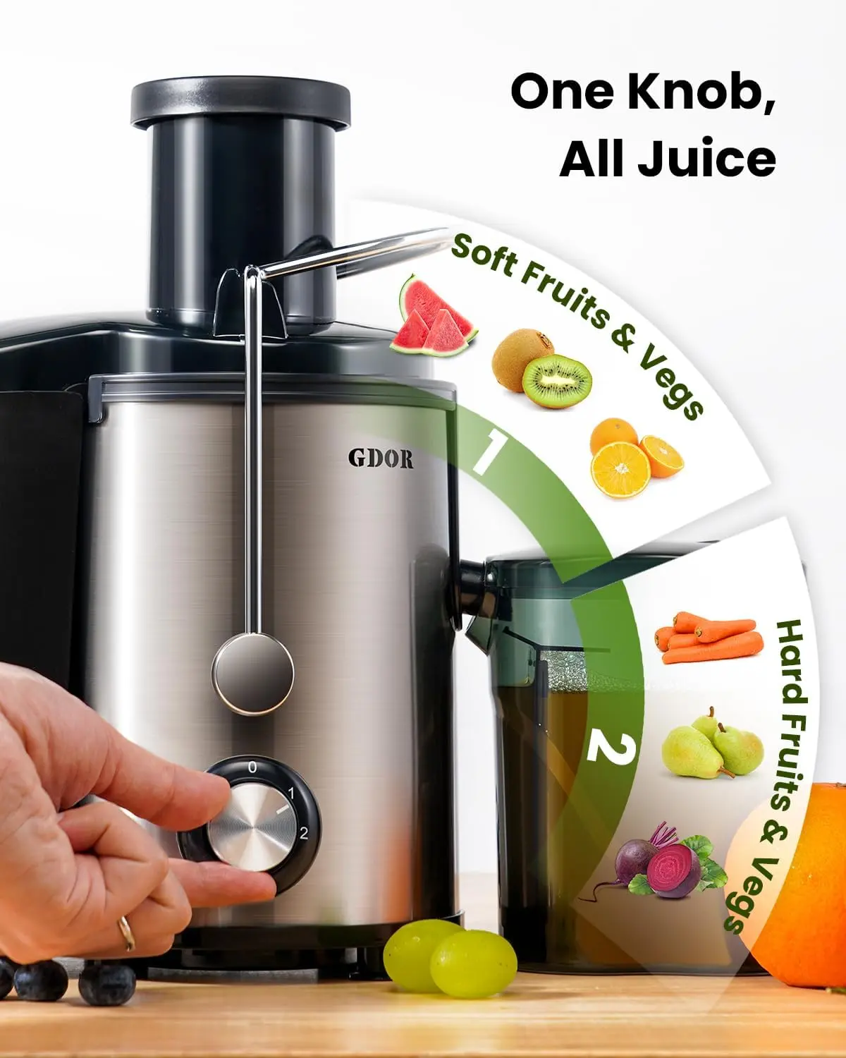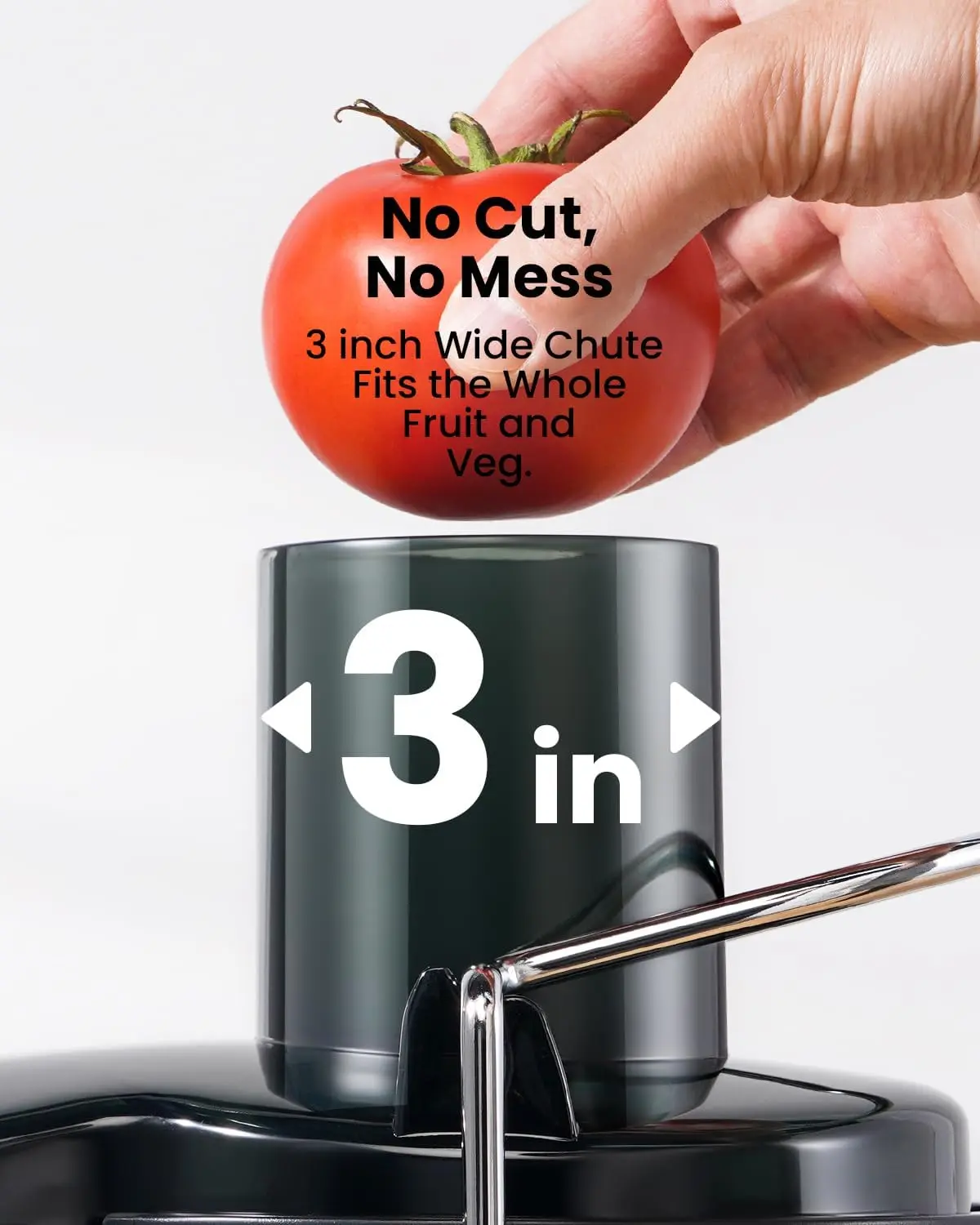 ·【3’’Large Feed Chute】- With a 3inch feed chute stainless steel juicer, you can juice whole fruits and vegetables without the need for chopping, eliminating the cutting process and enabling hands-free juicing for a fresher juice experience while saving time