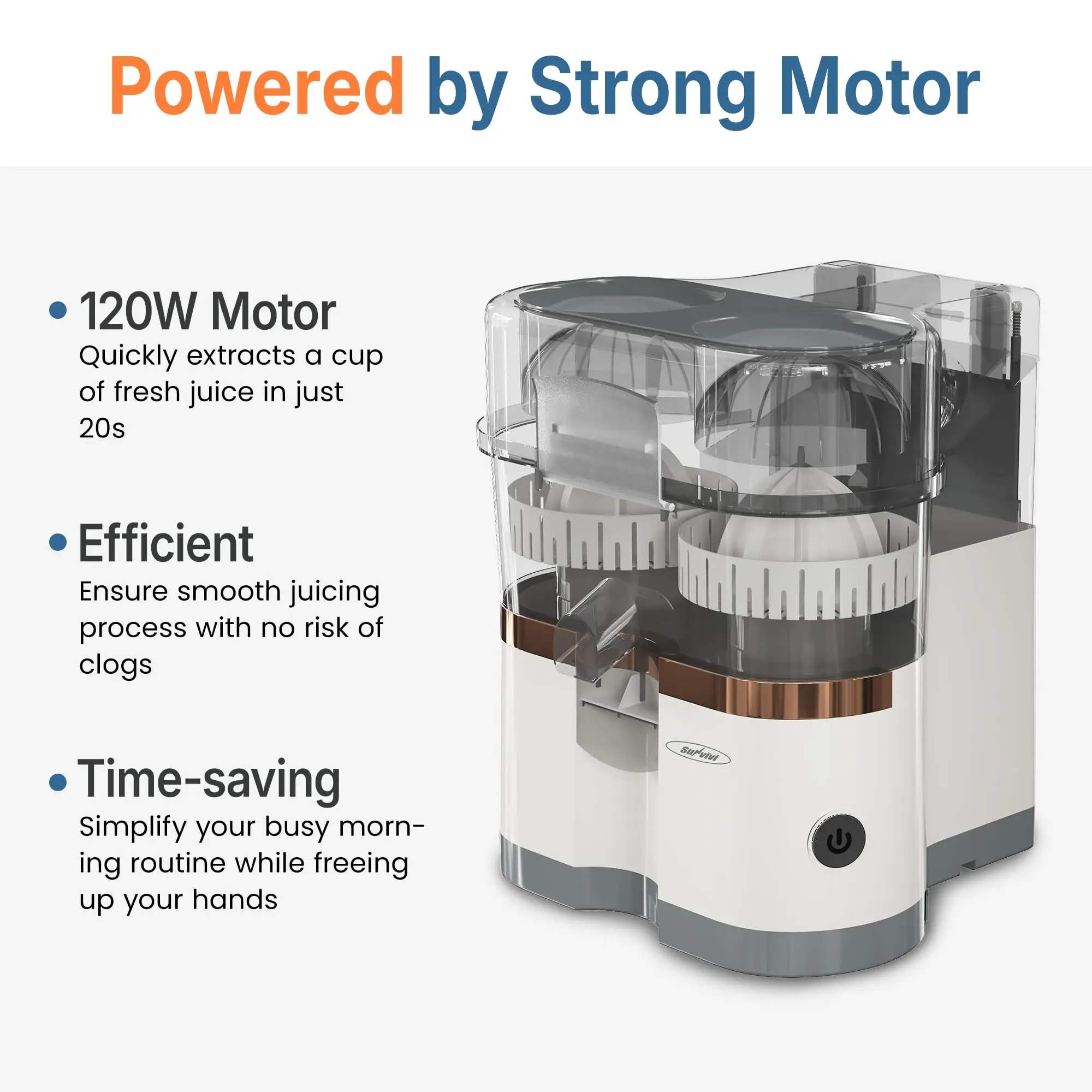 Efficient Juicing: This juicer Machine, with its 120-watt motor, can quickly produce a cup of fresh juice in only 20 seconds. It runs quietly and smoothly, providing jam-free, high-quality juicing consistently. Perfect for busy mornings or whenever you need a refreshing drink, its efficiency and reliability make it an essential kitchen tool.