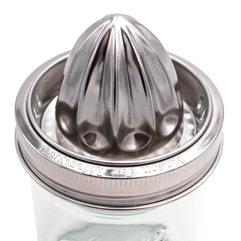 I got this to go with a 16 oz. wide mouth jar and it is the best juicer I own. Way better than the one with the handle that squeezes the citrus. It all filters down and the design catches the seeds. Highly recommend.