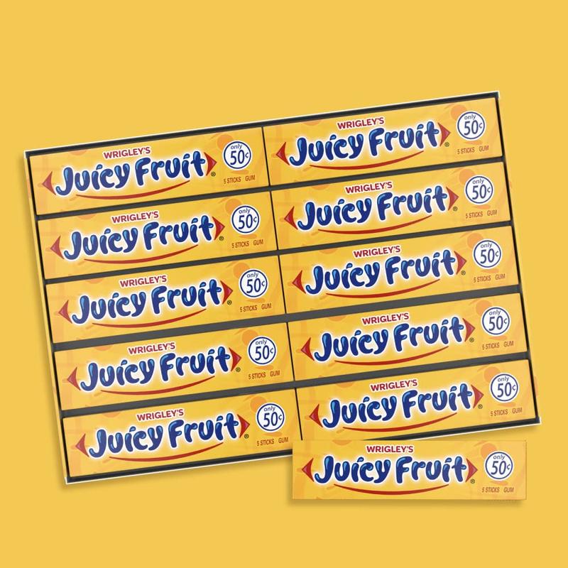 ·The happiest mouths are busy chewing WRIGLEY’S JUICY FRUIT gum during a movie night, road trip, or as part of a gift basket.