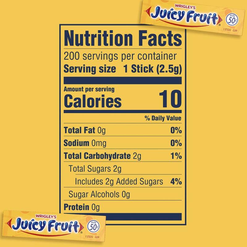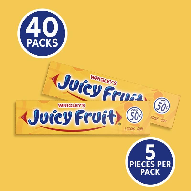 ·Contains forty (40) 5 stick bulk gum pack of WRIGLEY’S JUICY FRUIT Chewing Gum.
