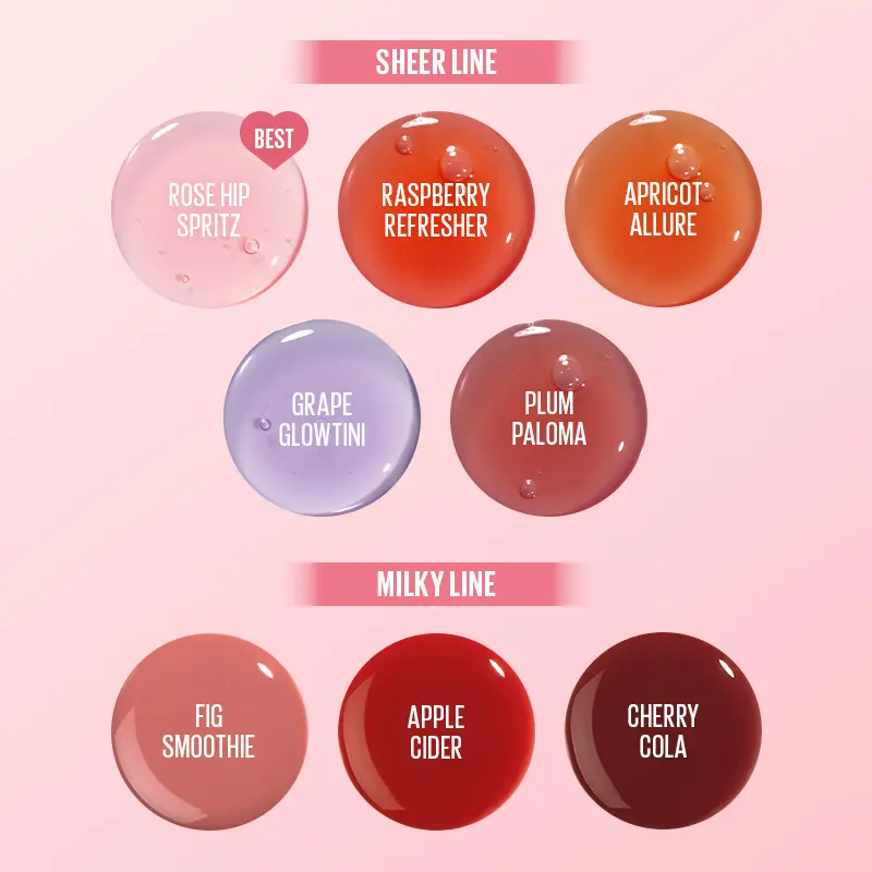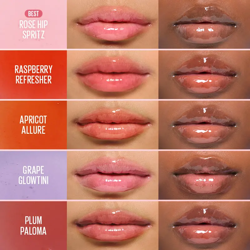These high-shine glass lip oils come in a 8 shades and are each formulated with lip-loving and fruit extract ingredients that nourish lips.