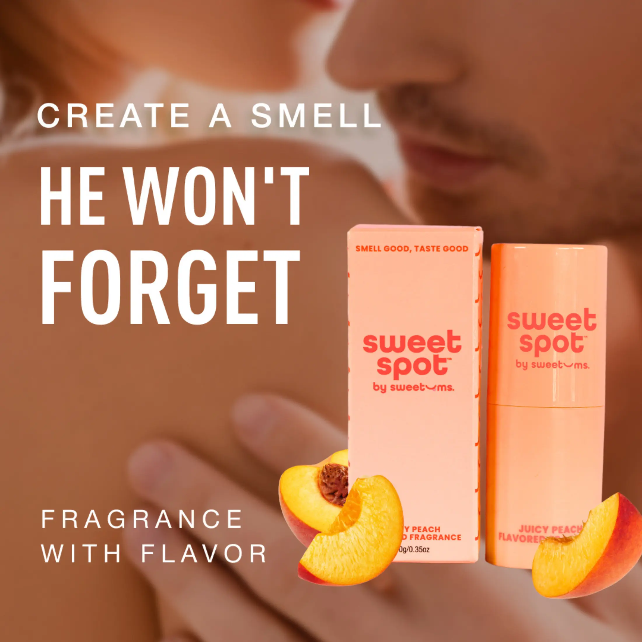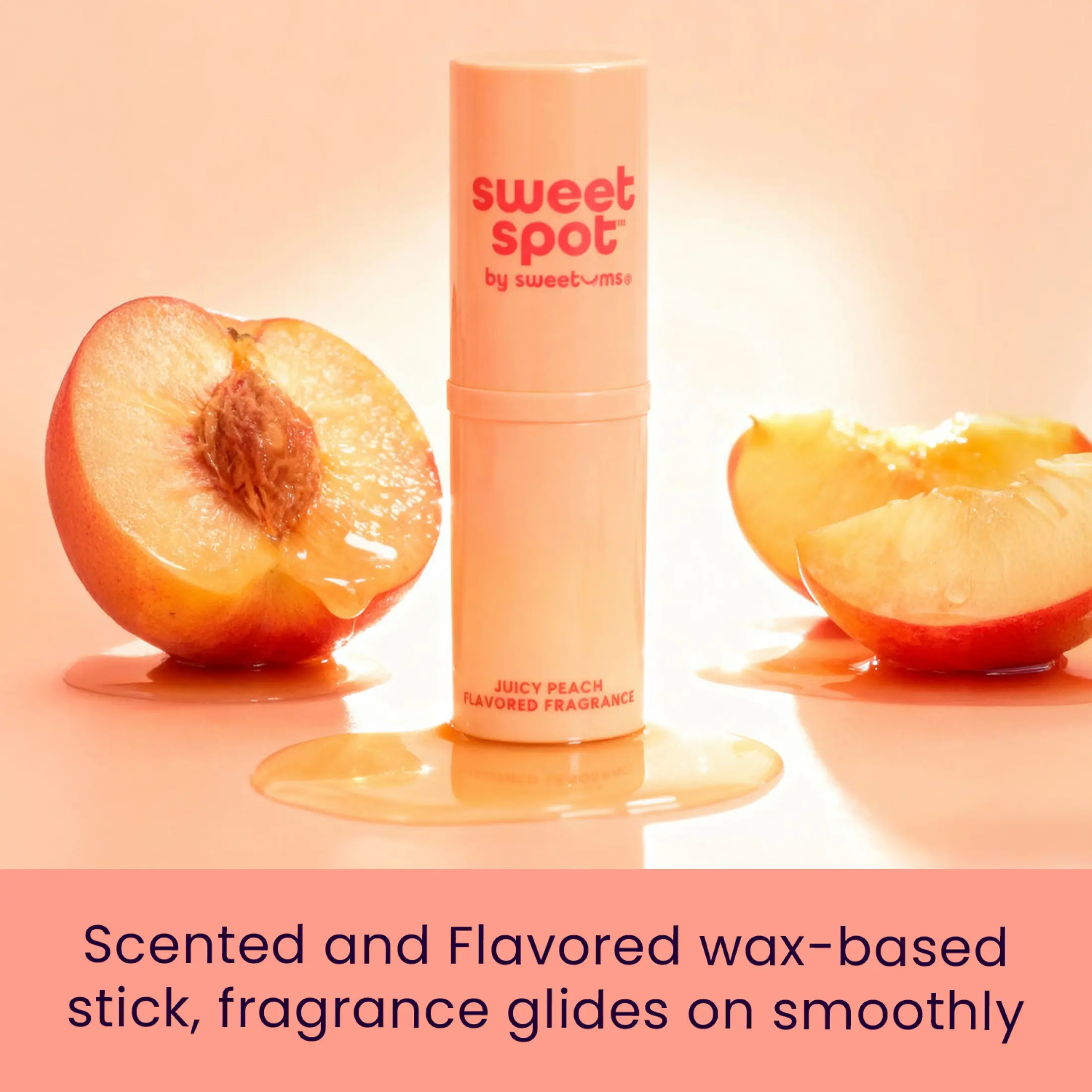 Β·Solid stick β Our Juicy Peach Sweet Spot fragrance comes is an solid wax based stick so there are no spills, no leaks, no mess.