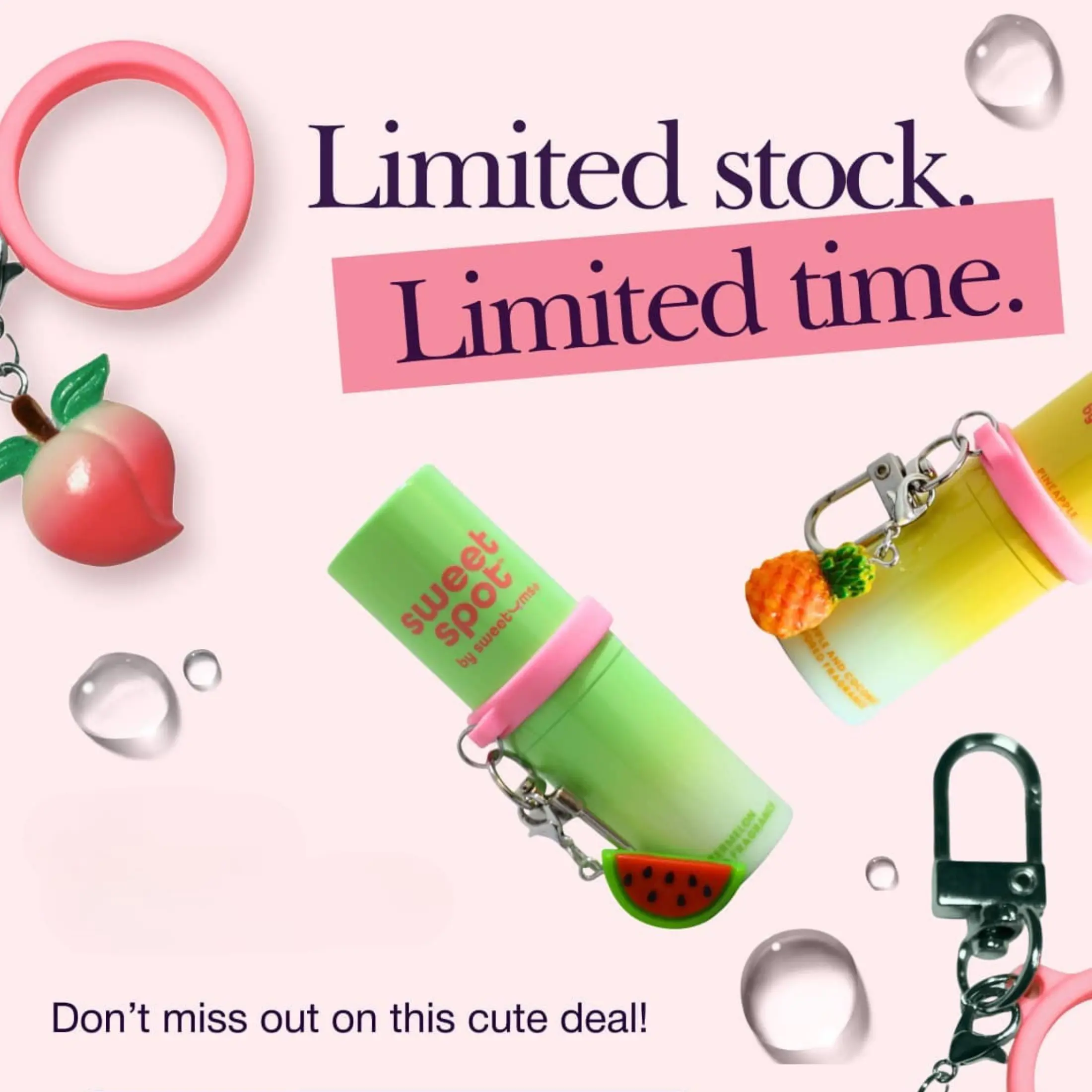 Β·Easy, Fun and Convenient Application- Your Sweet Spot fragrance can now go everywhere you go. Simply attach it to the key chain with the rubber band and then clip it to your purse and off you go. You can now apply your fragrance anytime, anywhere, for a little playful, flirty moment.
