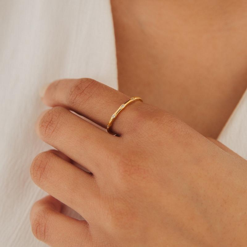 Juliet Diamond Ring - Minimalist Gold Diamond Ring by Caitlyn Minimalist - Dainty Thin Stacking Crystal Ring - Romantic Anniversary Gift for Girlfriend