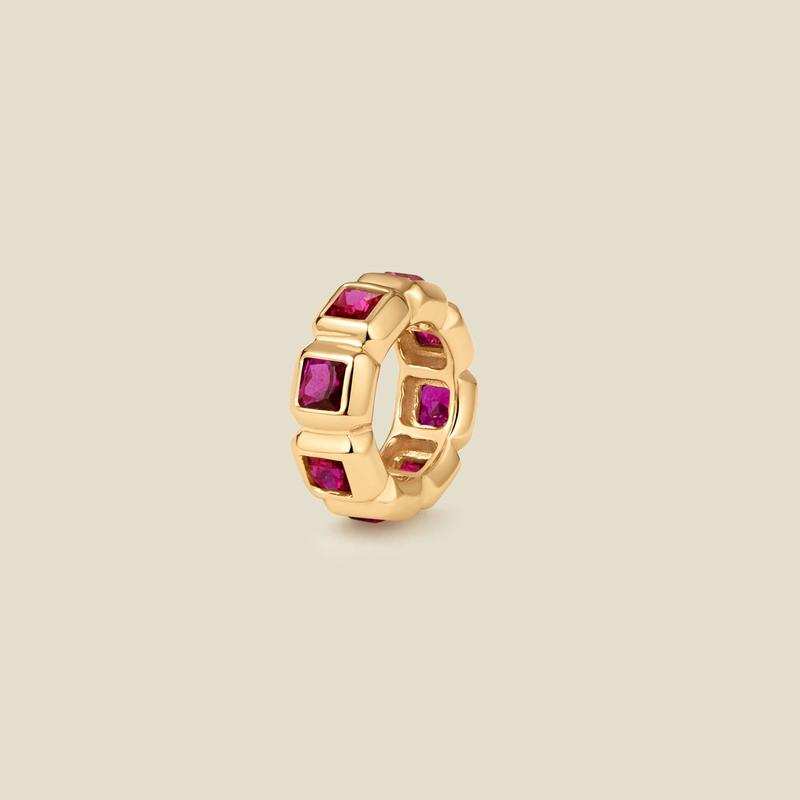 A symbol of grit, this petite red ruby charm features Asscher cut CZs in a modern bezel, proving that small things can hold big meaning. Thoughtfully designed for effortless layering, its low-profile shape offers space to stack more of what matters- capturing each moment, memory, or milestone along the way.