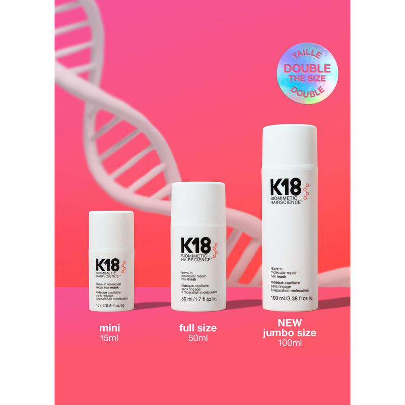 A leave-in treatment mask that works on the molecular level to reverse hair damage in just 4 minutes. The K18PEPTIDE™ is clinically proven to repair damage from bleach + color, chemical services and heat* – with immediate and lasting results to restore strength, softness, smoothness and bounce to hair.