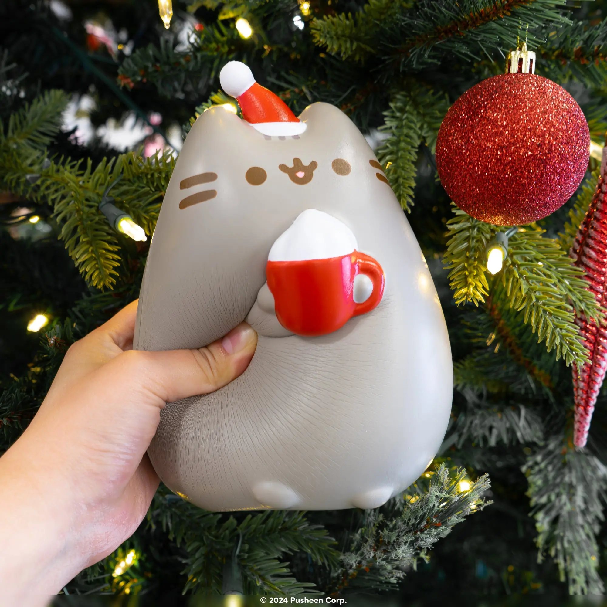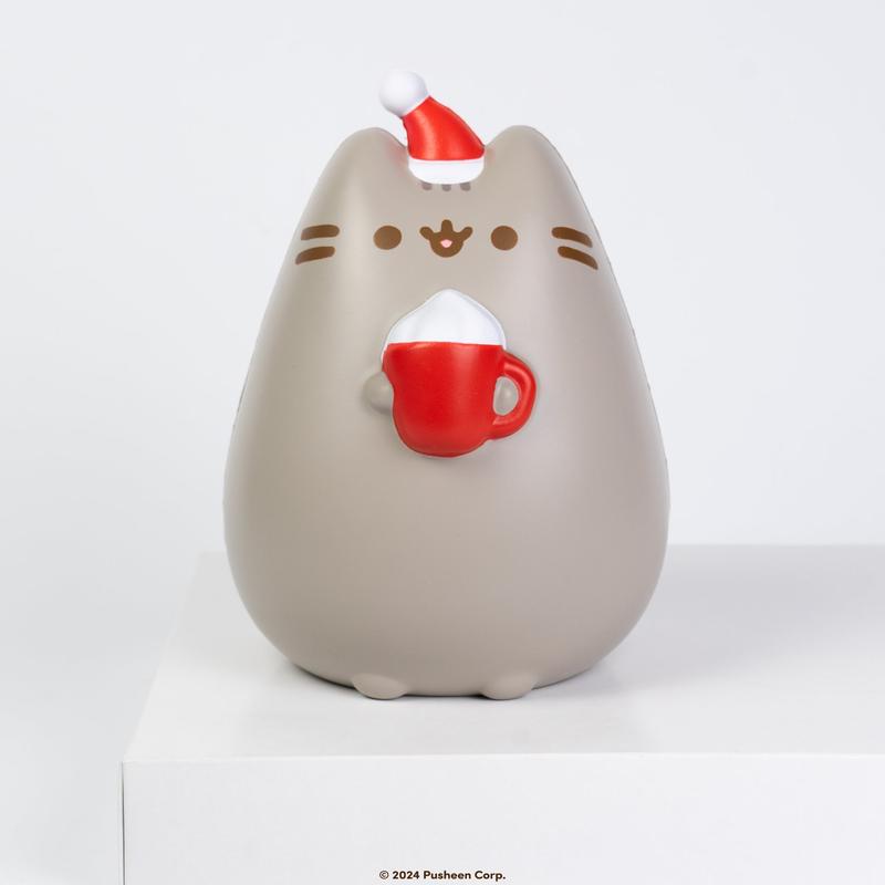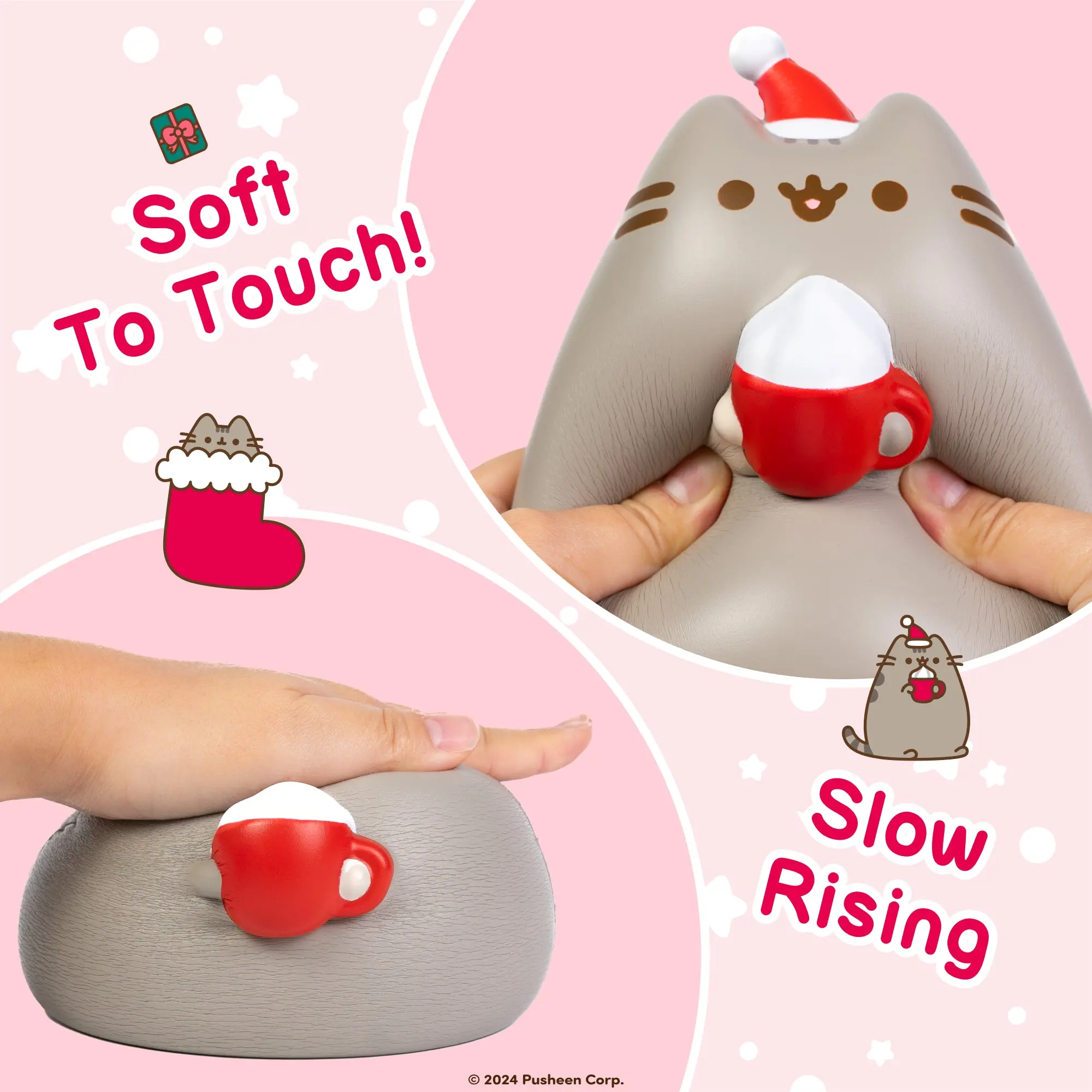 ·SPECIAL EDITION – Genuine Licensed Jumbo SquiSHU squishy toy featuring Pusheen in a super cute Santa hat holding a mug of hot cocoa!