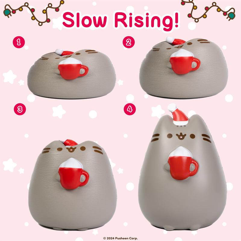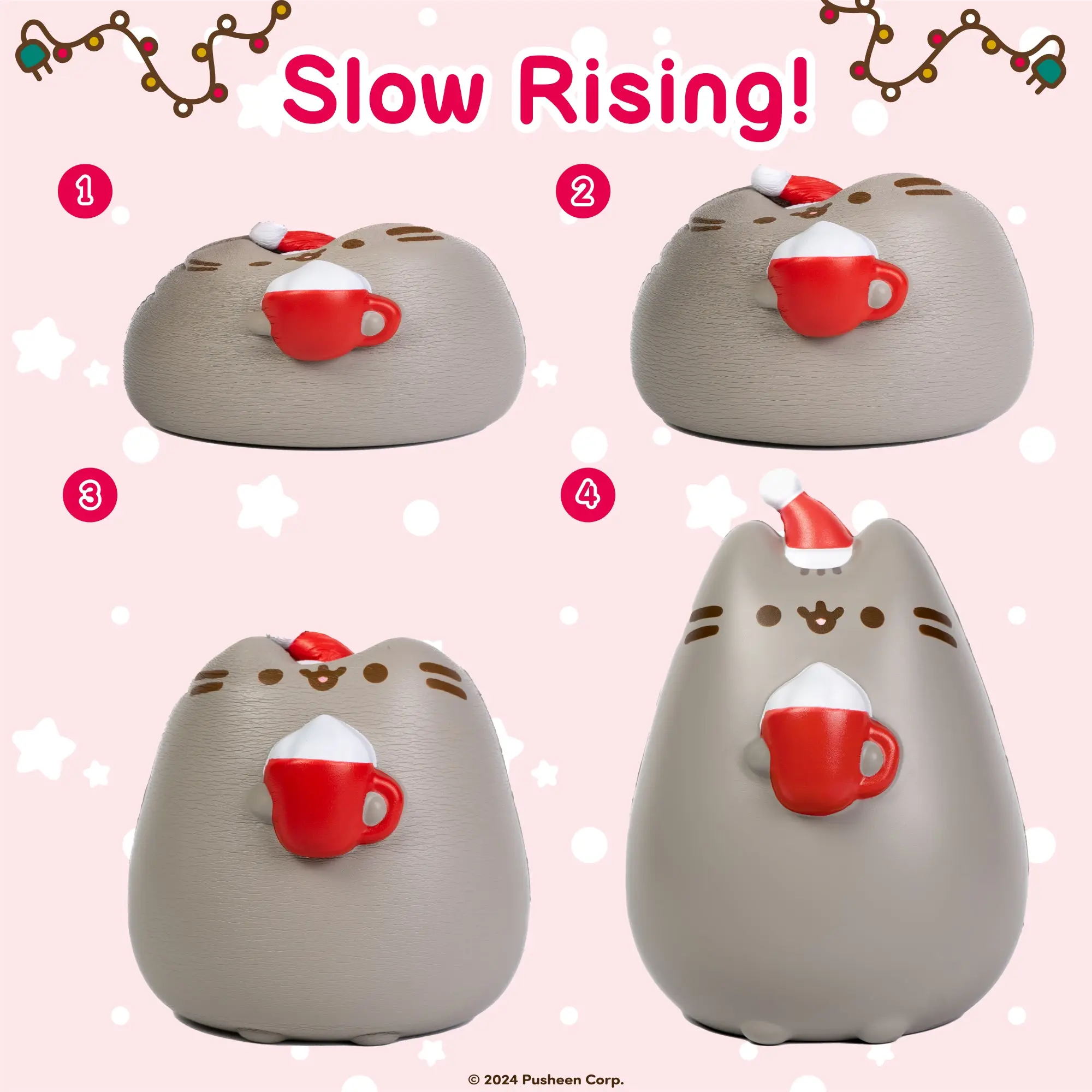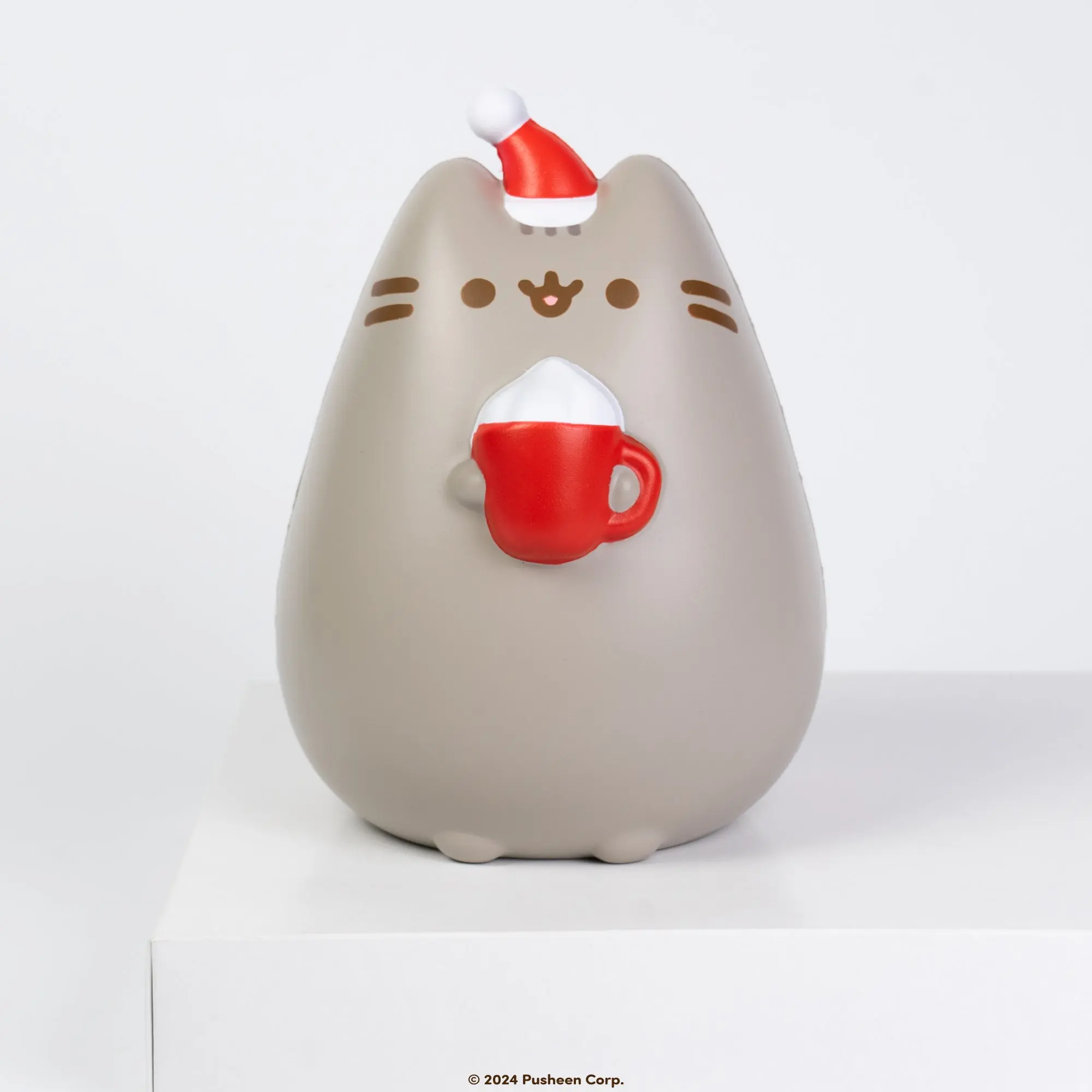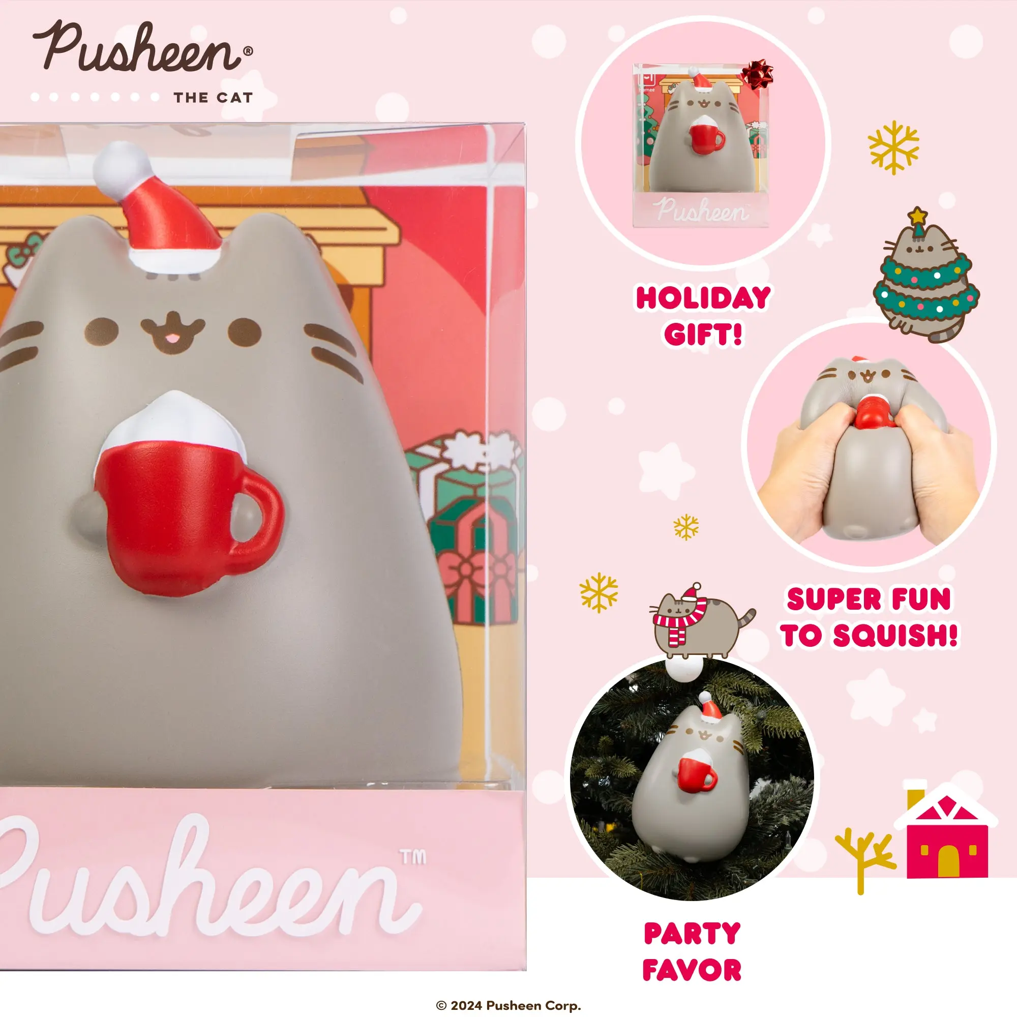 ·SPECIAL EDITION – Genuine Licensed Jumbo SquiSHU squishy toy featuring Pusheen in a super cute Santa hat holding a mug of hot cocoa!