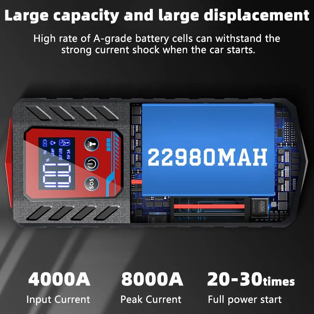 A: 229800mAh 8000A Car Jump Starter (For 6.0L Gasoline / 5.0L Diesel)