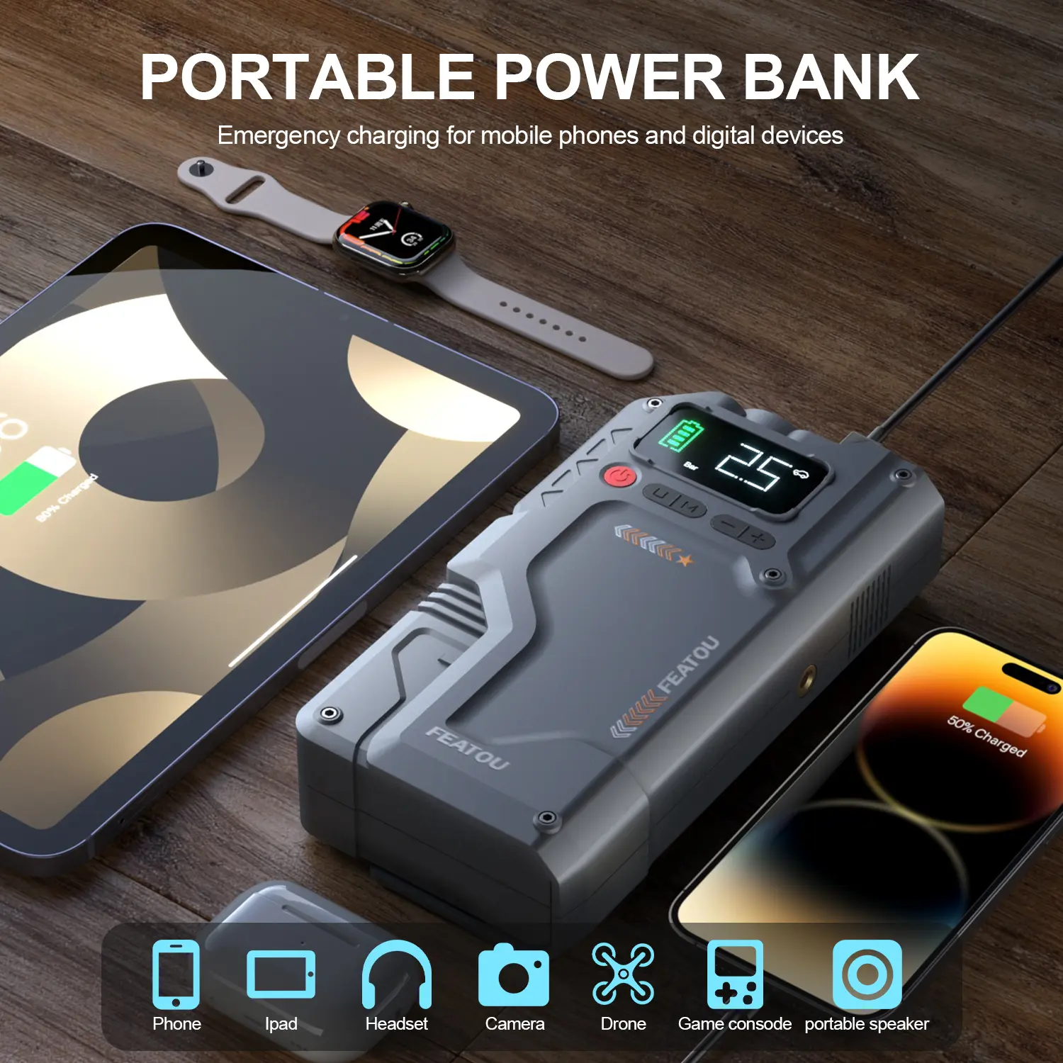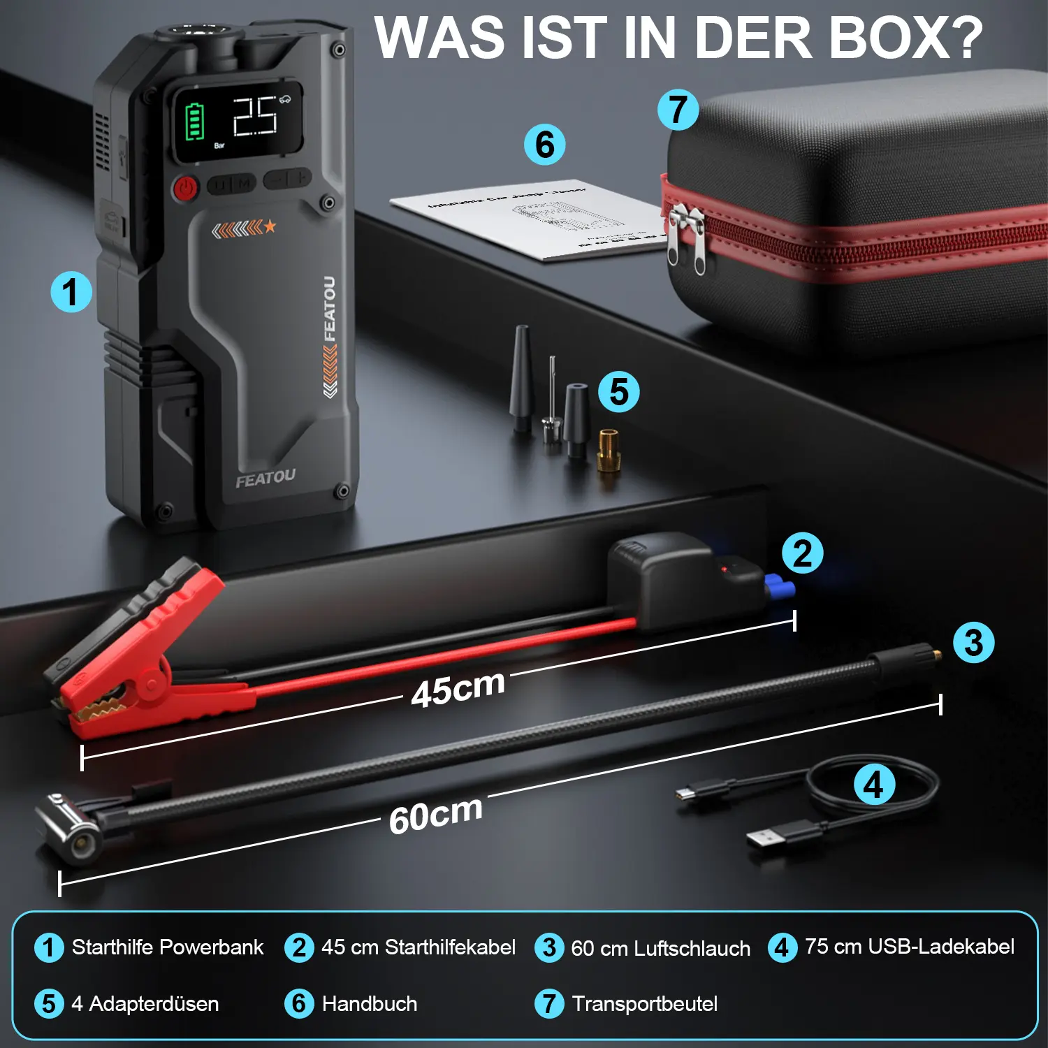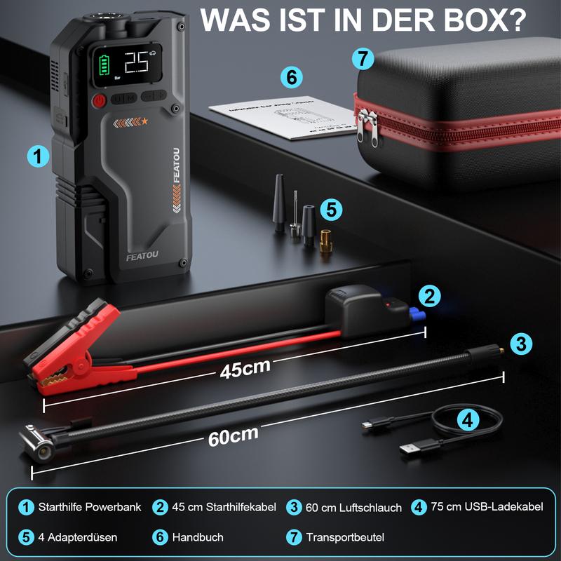 ·Convenient And Portable: The jump box comes with a premium case for easy storage and portability. Whether it is used at home or traveling, it is more convenient to organize and carryBrand:Featou
