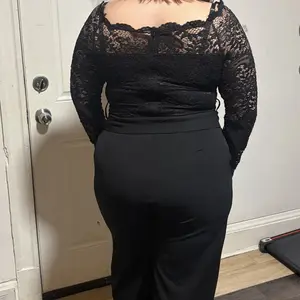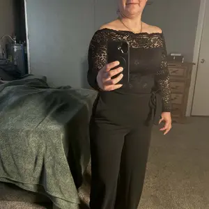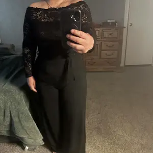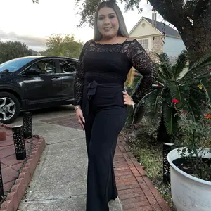 ·Flattering Fabric & Fit Crafted from a soft, stretchy blend of 90% rayon and 10% elastane, this jumpsuit hugs your curves for a sleek, polished look. The upper bodice is fully overlaid with delicate eyelash lace, adding texture and elegance.