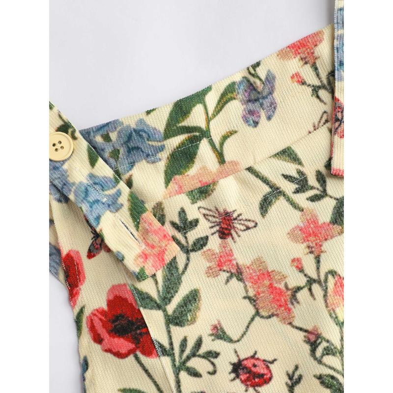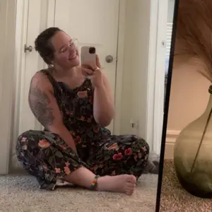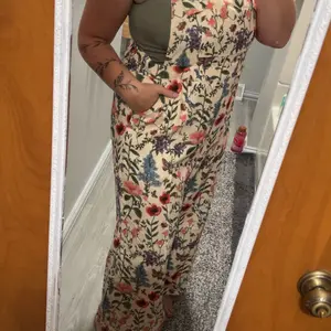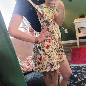 I had so many compliments wearing this awesome little corduroy Floral jumpsuit! It's light and thin so it's great for the spring and summertime ✨️ it has adjustable buttons on the top for a shorties it could have used one more hole maybe but no big deal! The print is absolutely glorious.