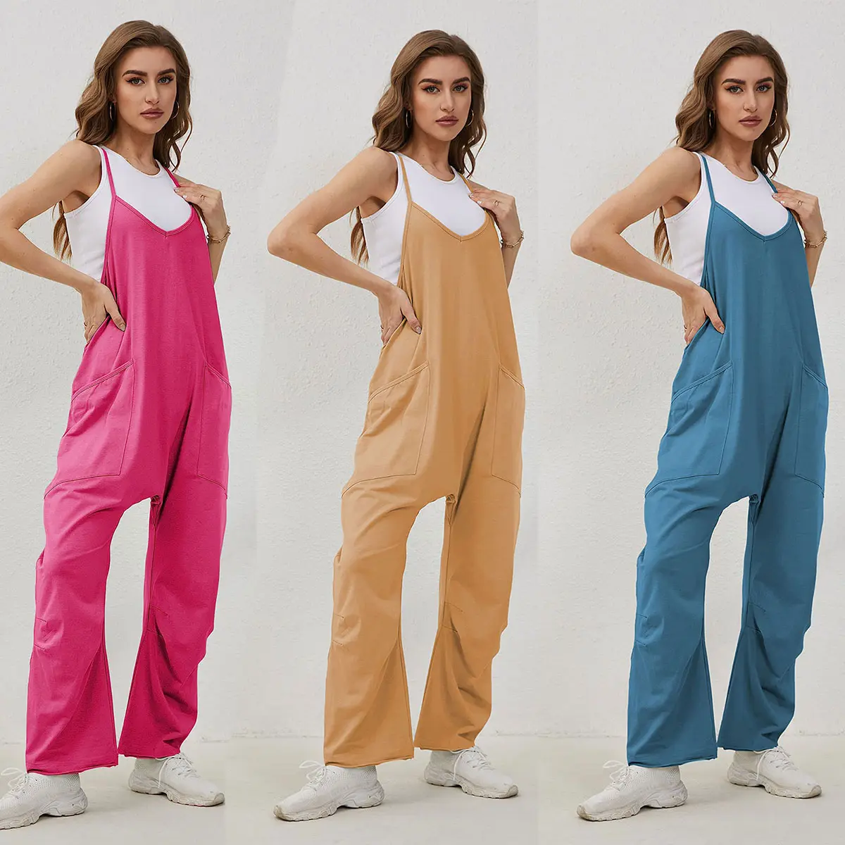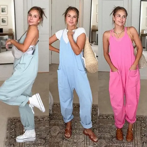 ·These chic and cute women's overalls feature a flattering long vertical drape that visually elongates the body for a leaner, taller silhouette. The loose, relaxed fit combined with stretchy fabric offers maximum comfort and freedom of movement—perfect for all-day wear without feeling restricted.