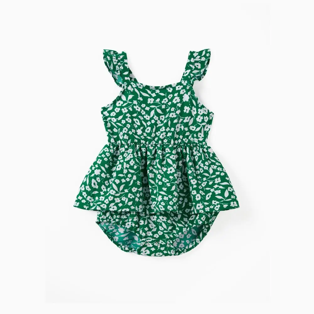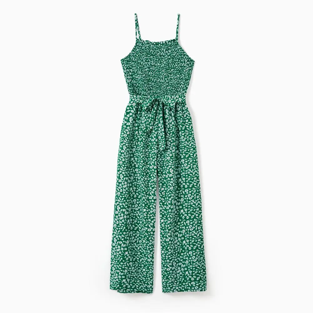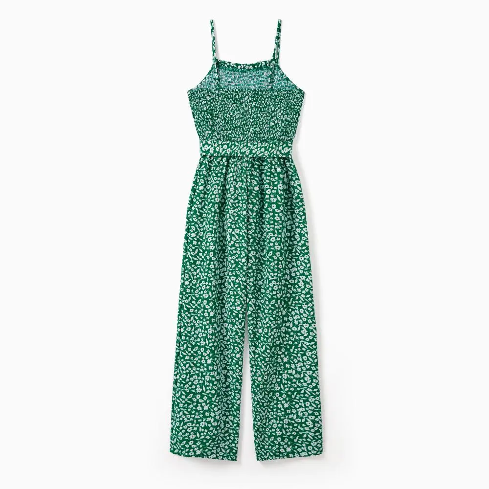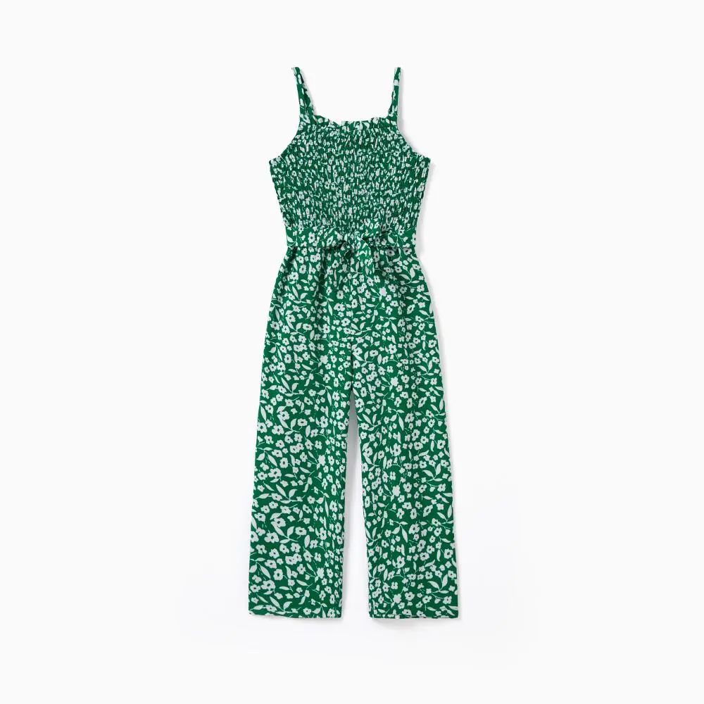 ·Product Introduction:Green floral matching jumpsuit for mother and daughter.