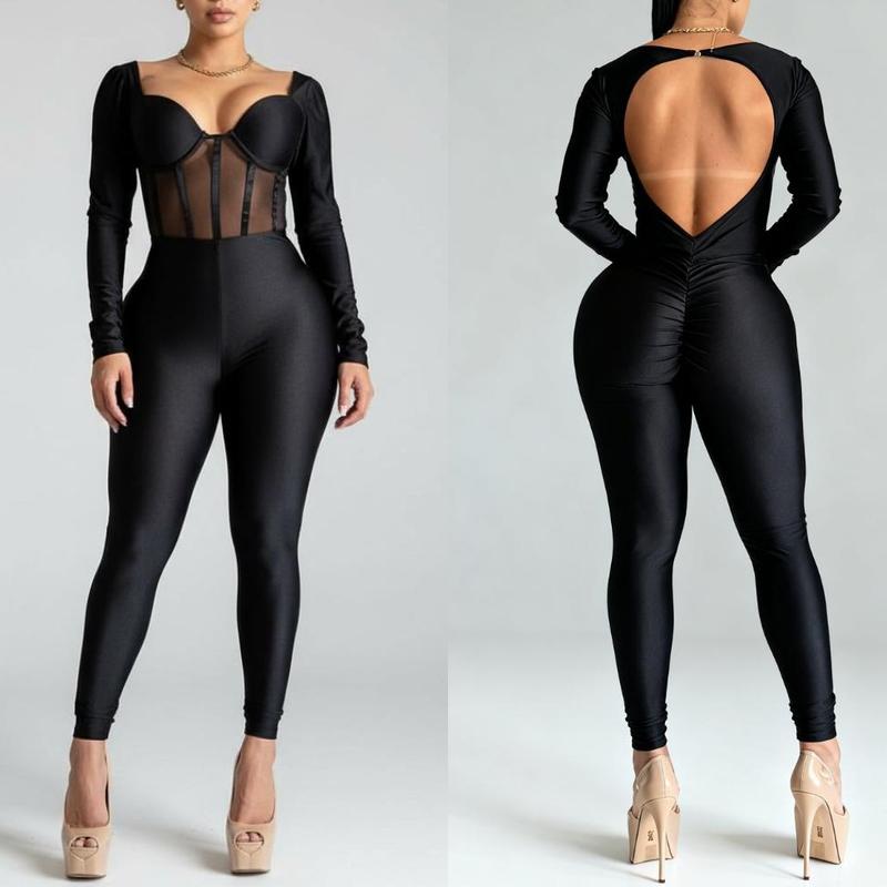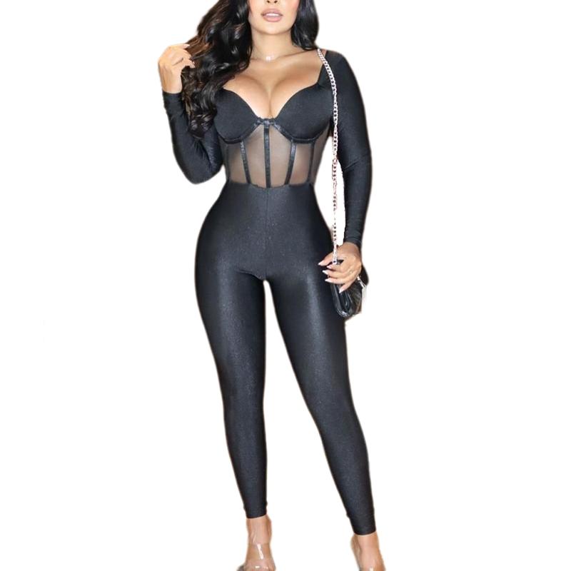 GREAT STRETCHY FABRIC : 90% Nylon, 10% Spandex.Elastic material, figure hugging easy to fit any body figure and you will feel close but free relaxed under this jumpsuits, slim design will show your perfect curves.