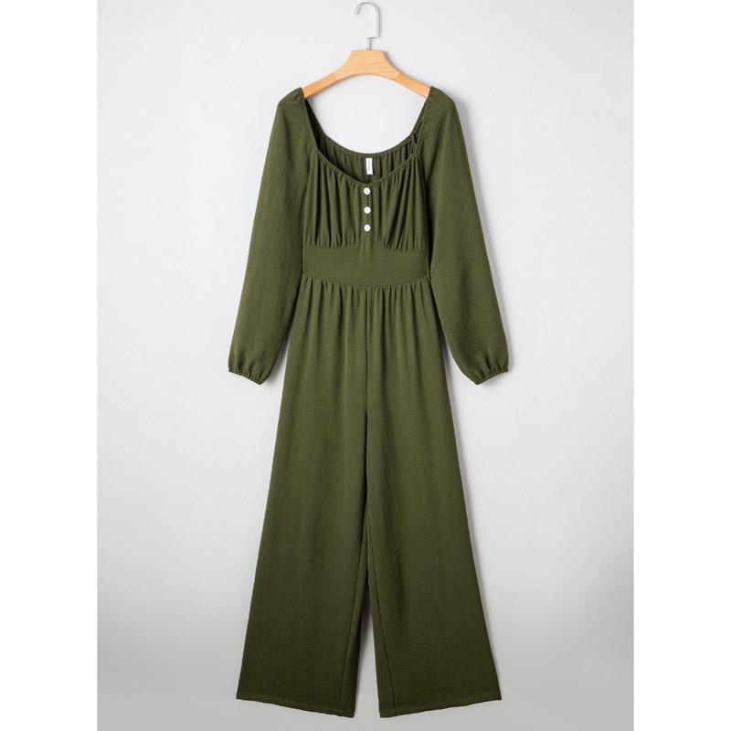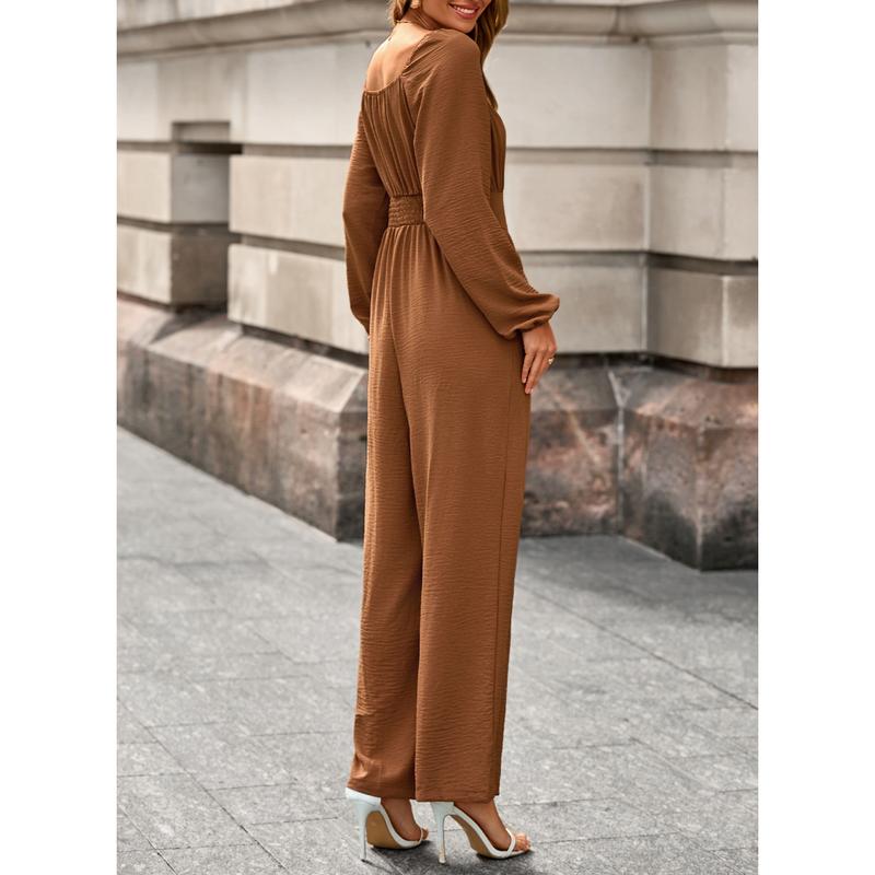 ·Feature: One Piece Jumpsuits, Long Sleeve, Square Neck, Wide Leg Pants, Two Side Pockets, Solid Color, Stretchable Long Pants Jumpsuit, Loose Fit, Casual Style.