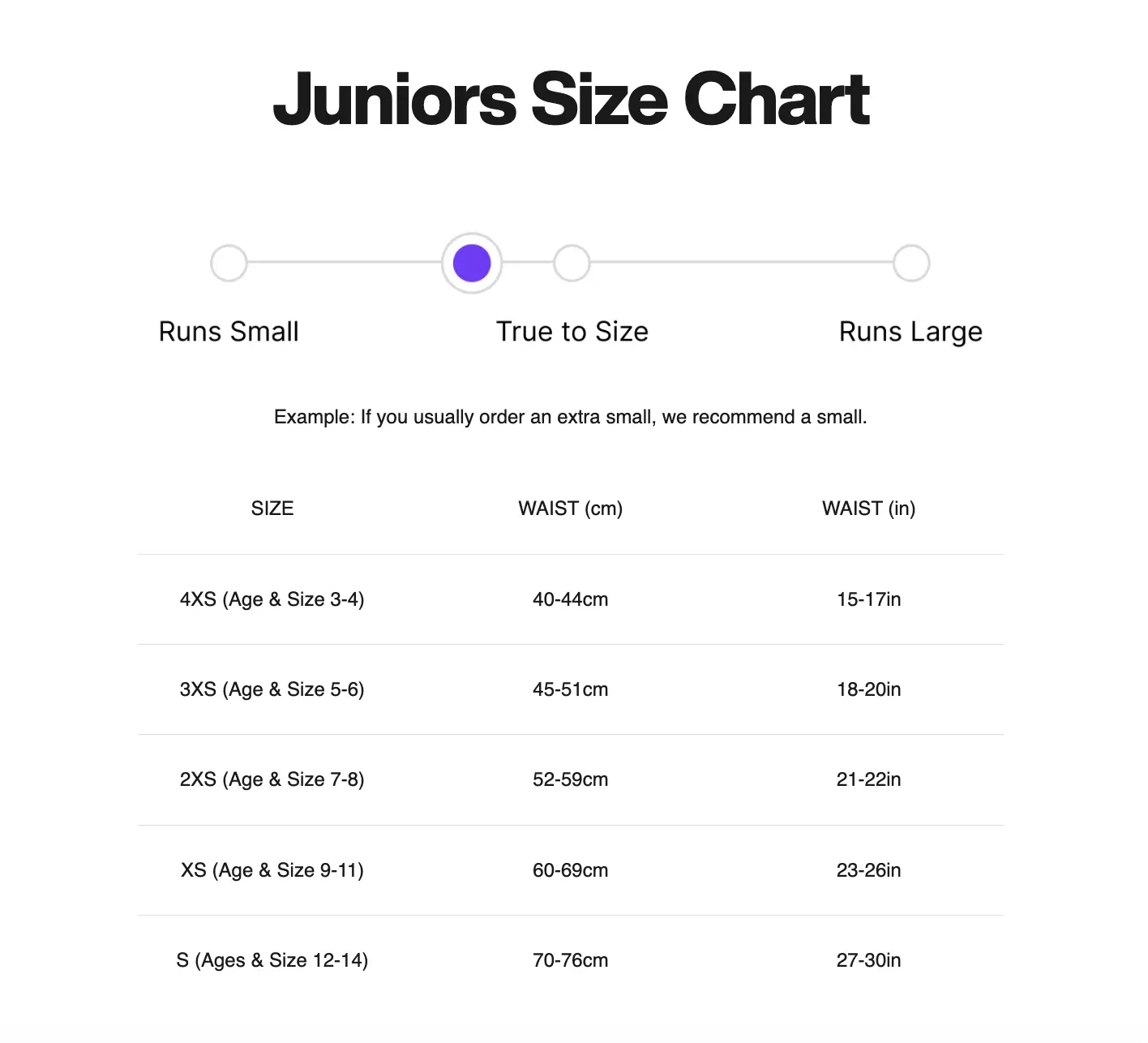Kid's Sizing – Available in 3 sizes (2XS-S, ages 6-14), making them accessible for every body. If you're between sizes, we recommend sizing up for optimal comfort.