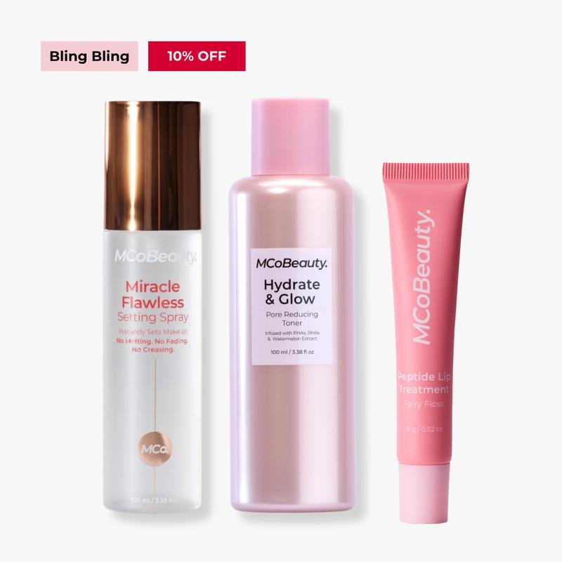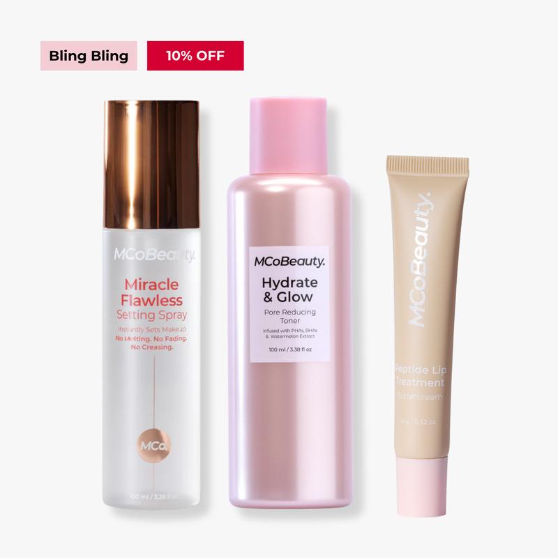 ·MCoBeauty Miracle Flawless Setting Spray: MCoBeauty MIRACLE FLAWLESS SETTING SPRAY locks in makeup, delivering radiance and hydration. It features a superfine mist and a custom atomizer for precise application.