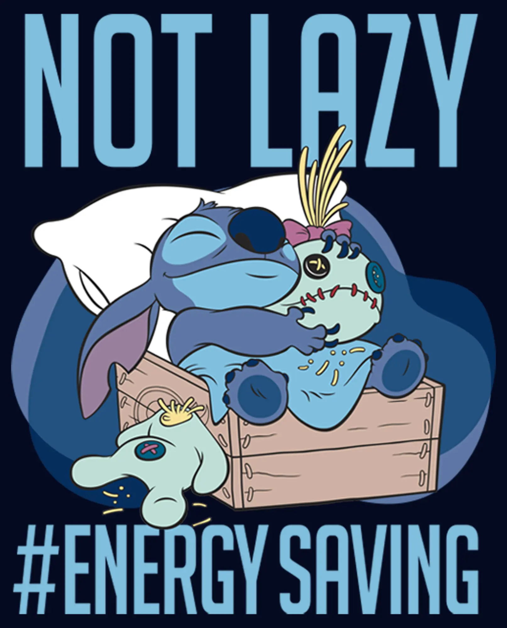 Junior's Lilo & Stitch Not Lazy, Saving Energy T-Shirt
