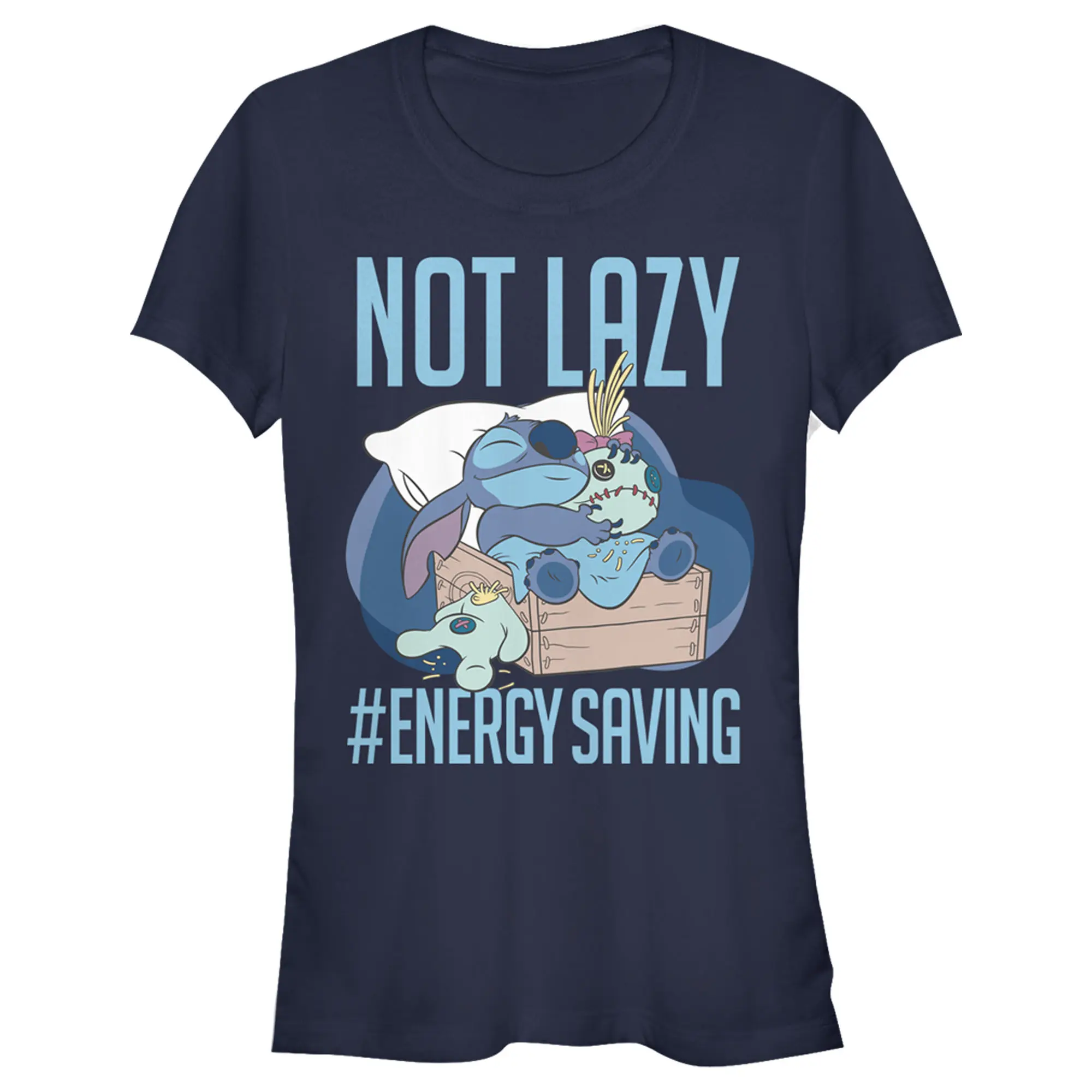 5. Junior's Lilo & Stitch Not Lazy, Saving Energy T-Shirt