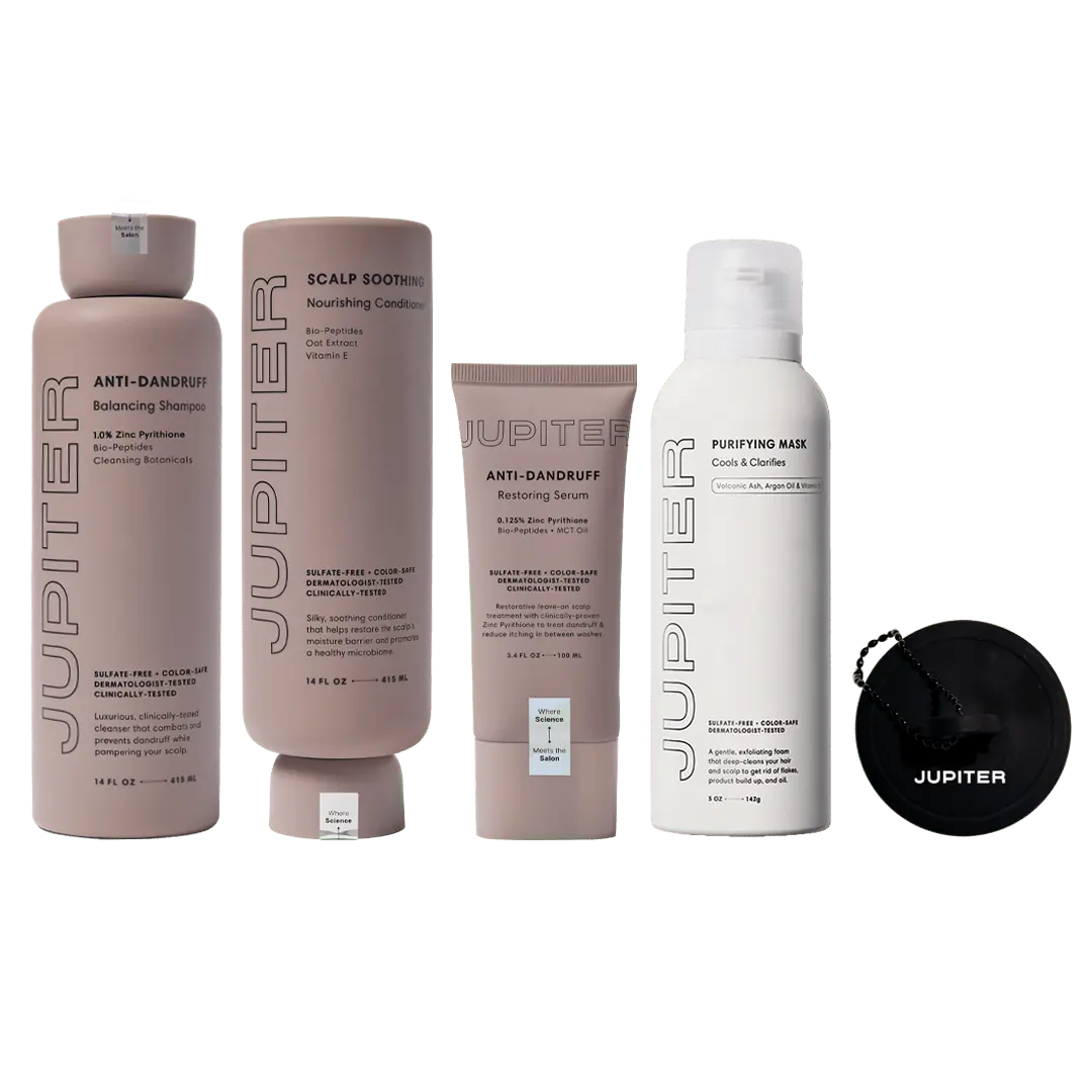 Balance, detoxify, and hydrate with our most comprehensive scalp care set for oily scalps, dandruff, and seborrheic dermatitis.